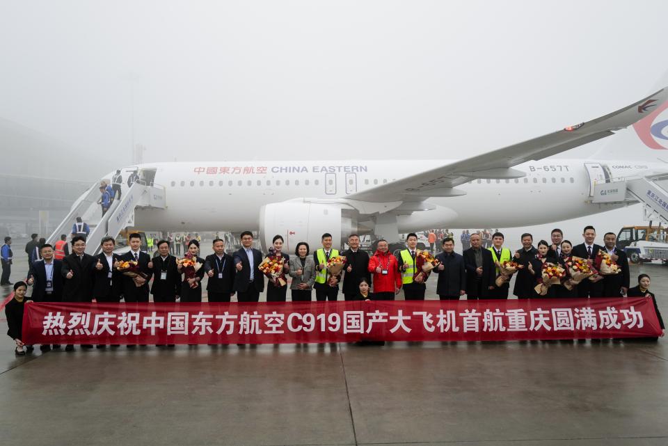 12月3日10时58分,随着中国东航最新引进的第九架C919执飞MU5421“上海虹桥—重庆”航班顺利飞抵重庆江北国际机场,国产大飞机C919重庆首个商业航班正式开通。重庆成为继上海、成都、北京、西安、广州、太原之后,中国东航C919执飞航班的第7座城市。