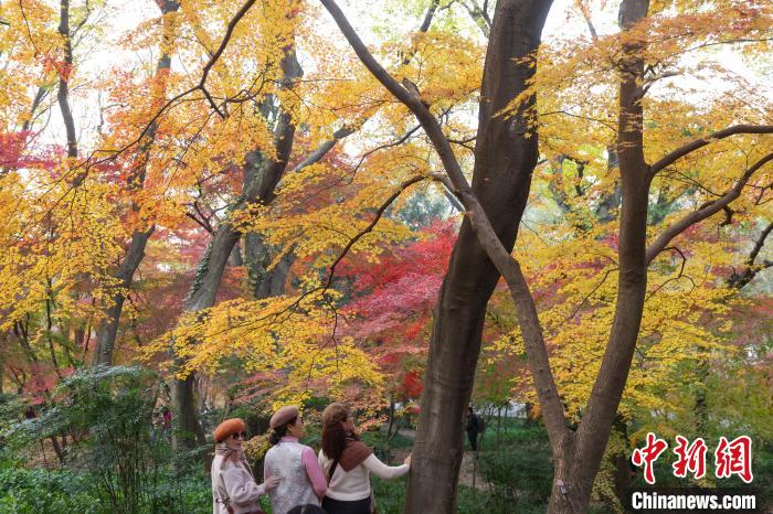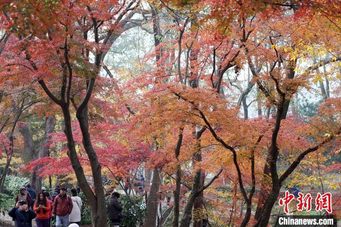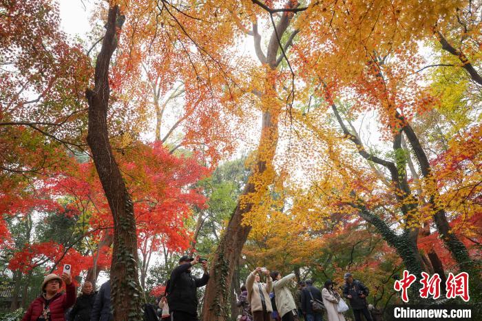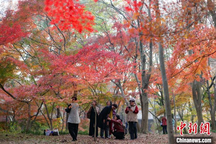 12月6日,江苏南京,中山植物园红枫岗枝叶层叠,呈现多彩“枫”景。据了解,南京中山植物园收集并保存红枫、鸡爪槭、羽衣、燕焕等槭属植物100余种,是当地红叶种类较为丰富、景观颇具特色的赏红叶景点。