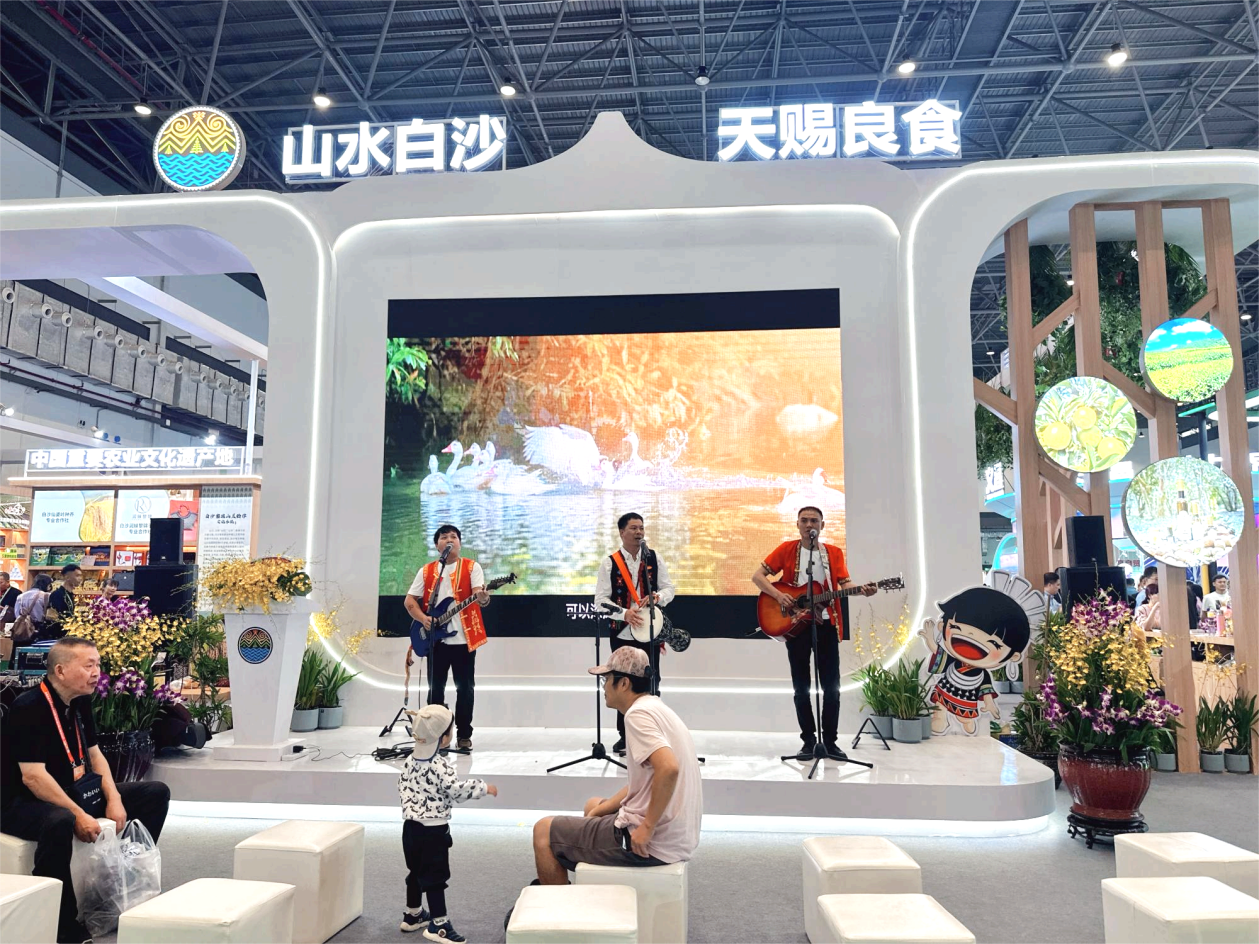 白沙馆,少数民族歌手现场演唱黎族歌曲(央广网实习记者 梁淑仪 摄)
