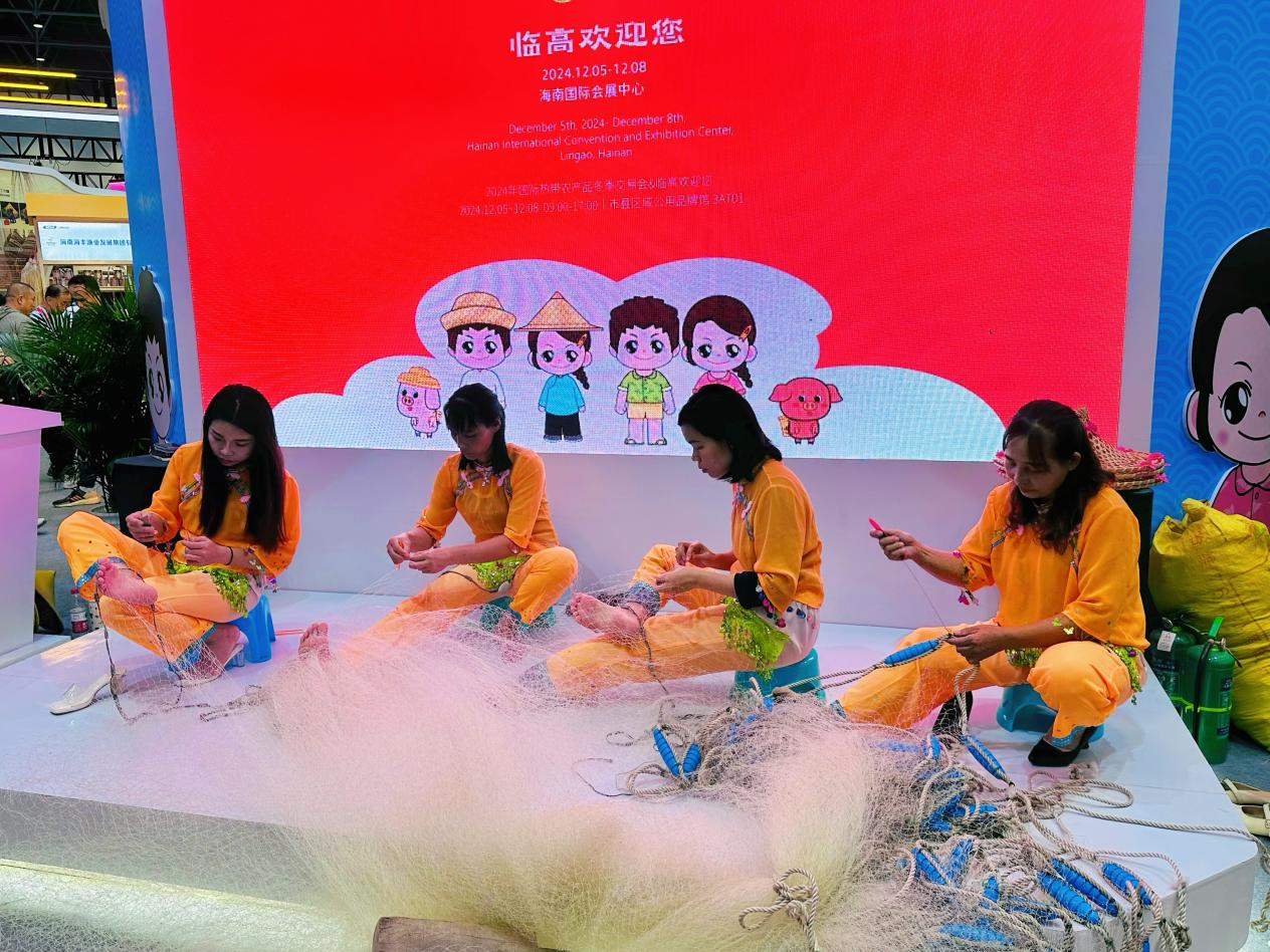 临高馆的渔女秀,将原汁原味的渔家日常搬到了冬交会(央广网记者 蔡文娟 摄)