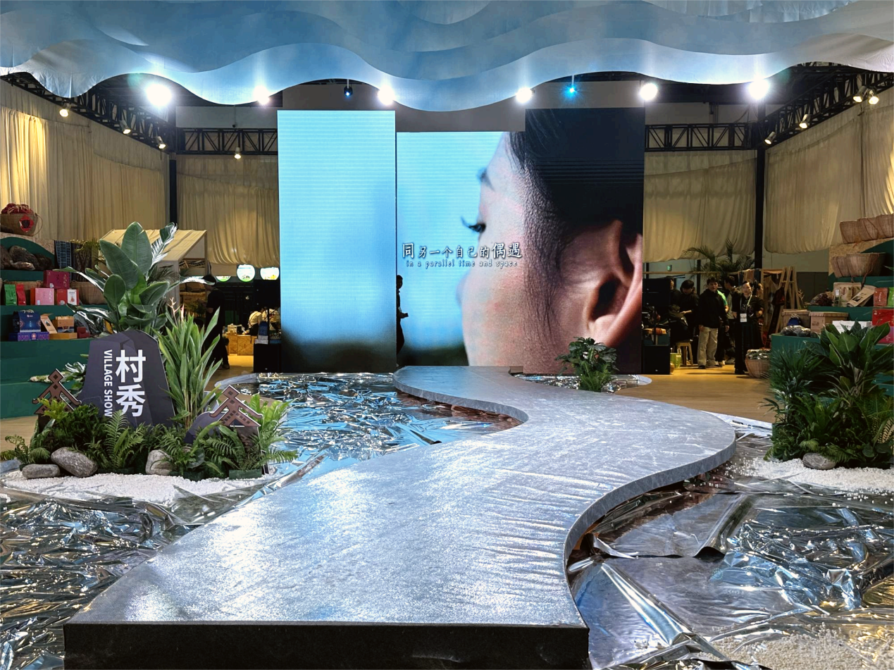 五指山馆,“村秀”在这里上演。展会期间,展馆每天都会推出走秀,黎锦、非遗手工艺品、土特产等都由村民以走秀的方式进行展示(央广网记者 蔡文娟 摄)