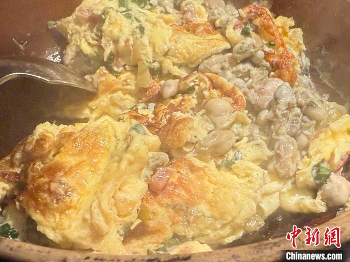 香气扑鼻的蚝仔啫蛋。 中新社 记者 王坚 摄