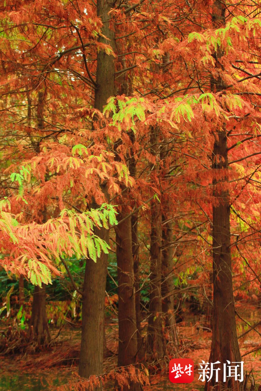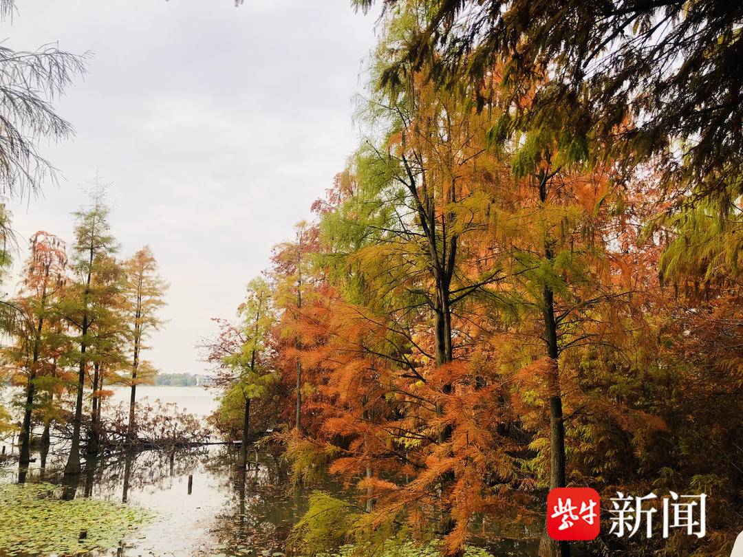镇江文旅集团工作人员介绍,水杉林最佳观赏时间为12月上旬。除了金山湖公园,镇江南山景区、焦山景区里同样有水杉林,金山景区、北固山景区的枫叶也到了观赏期,“山山红叶飞”和“杉杉来了”,都将带给众人 一场视觉盛宴。