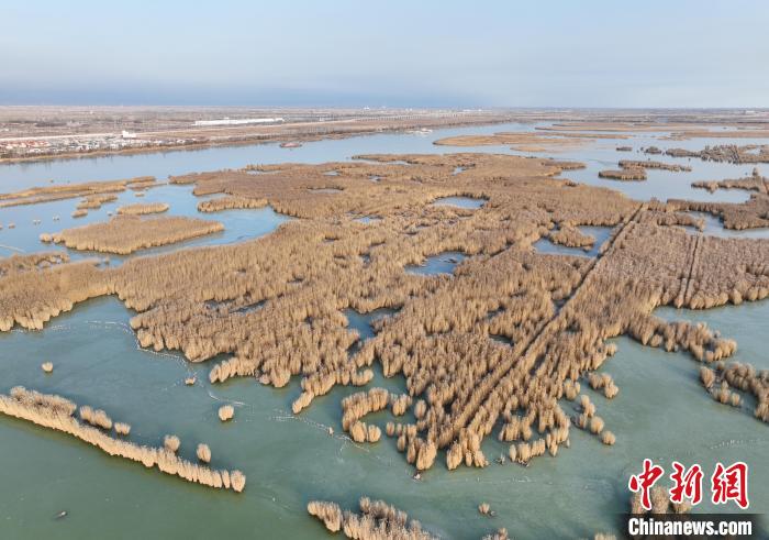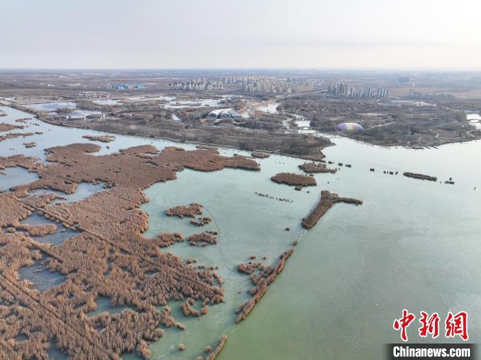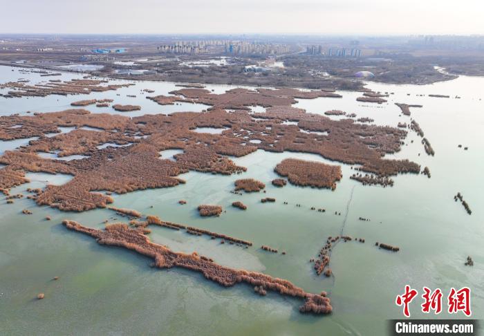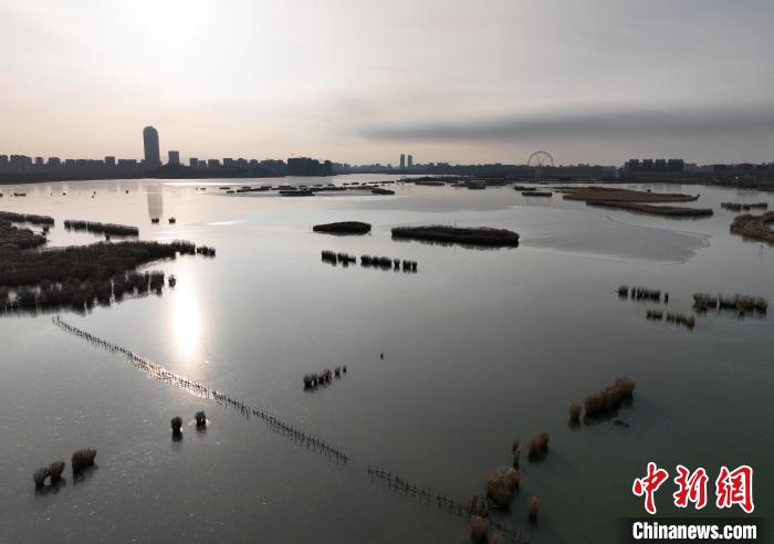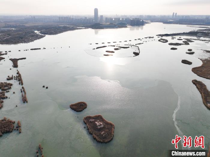 12月8日,航拍位于宁夏银川市金凤区的阅海国家湿地公园冬景。(无人机照片) 中新社记者于晶摄