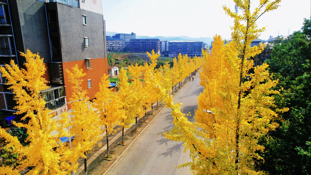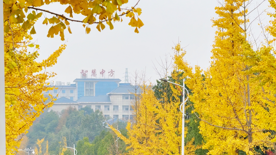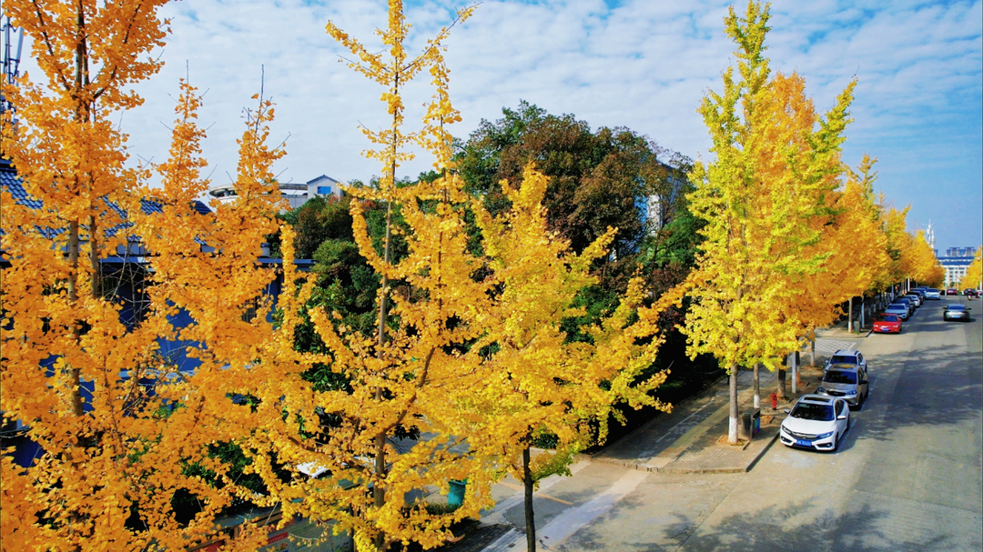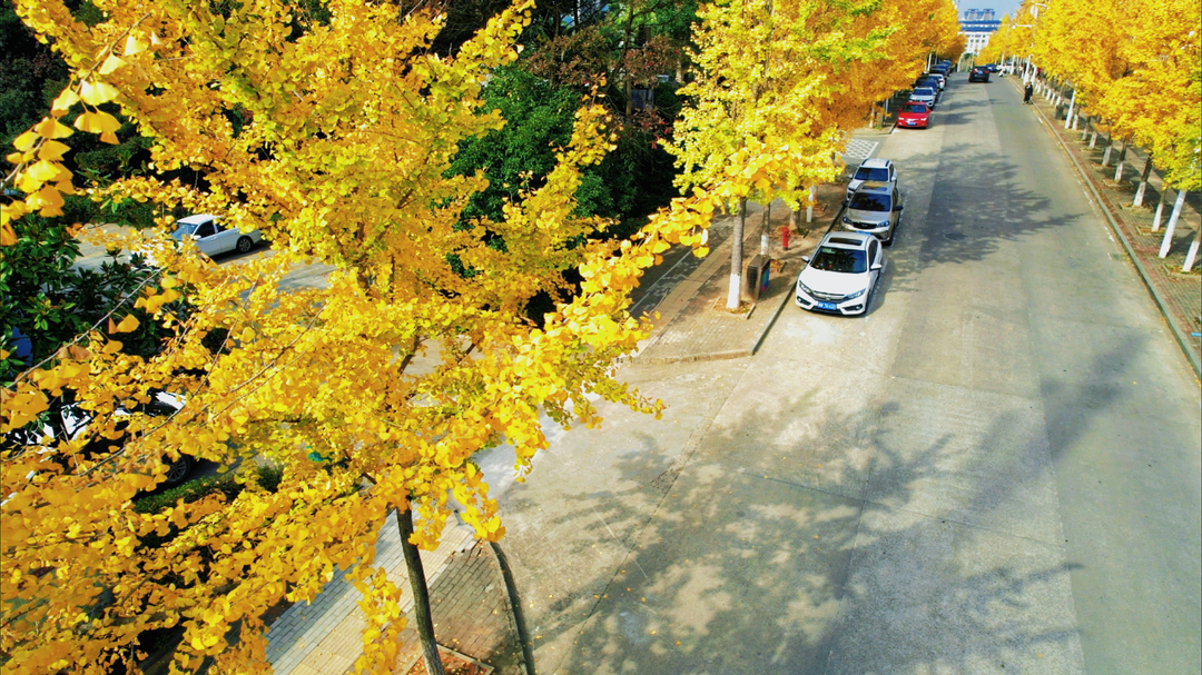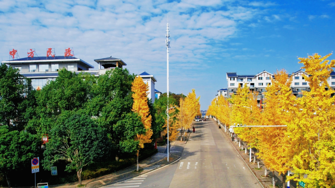 初冬的湖南省怀化市中方县城,一棵棵银杏树连成了金色的长廊。