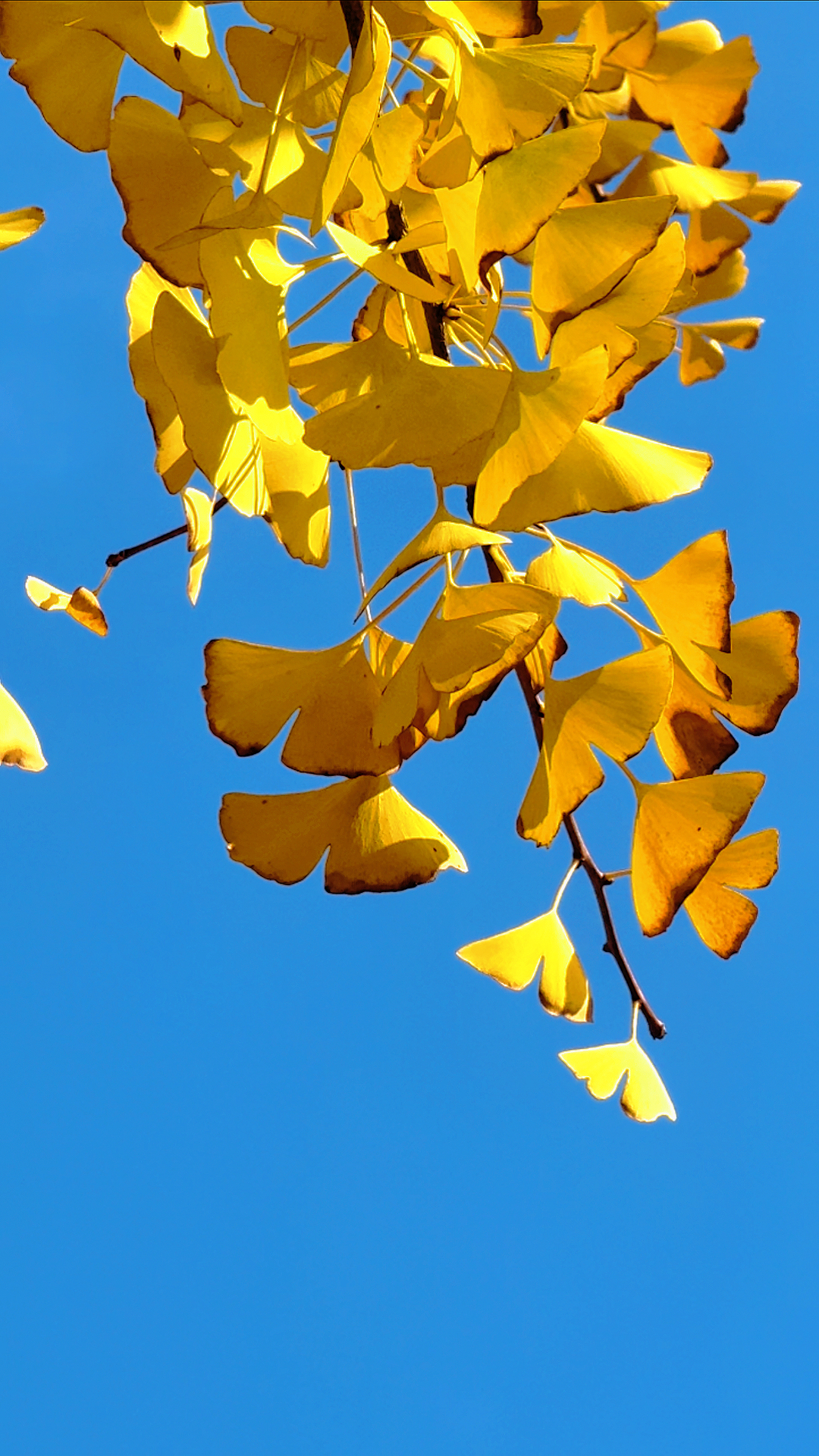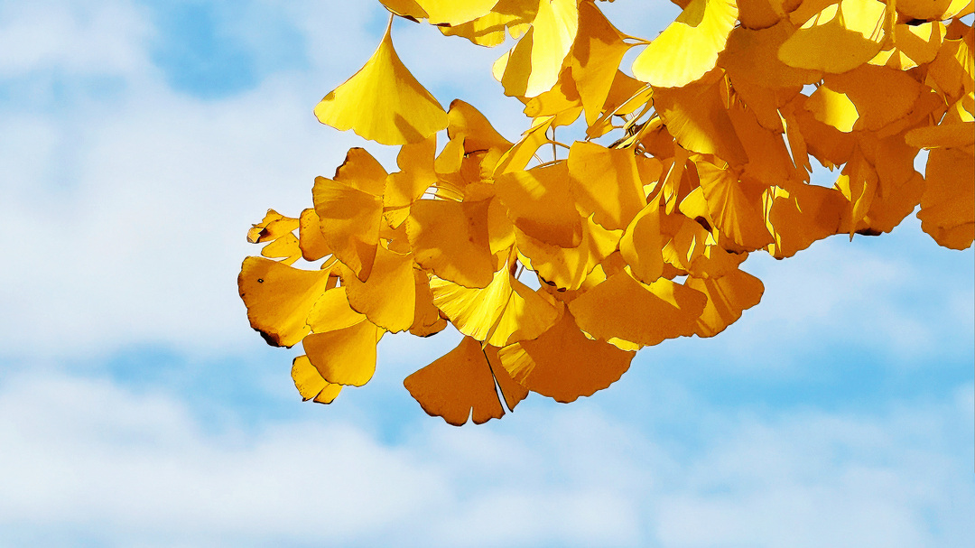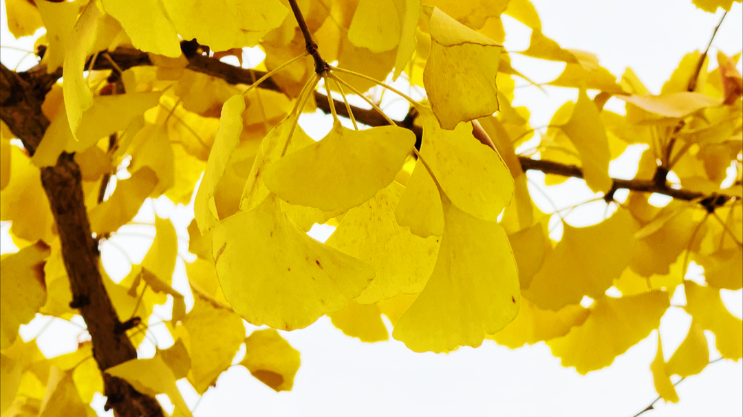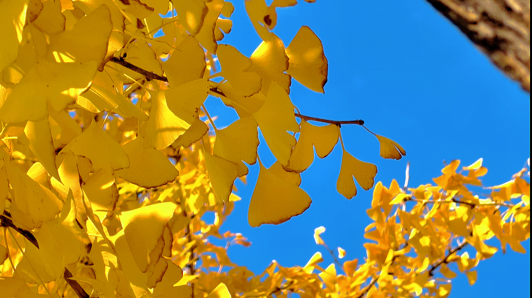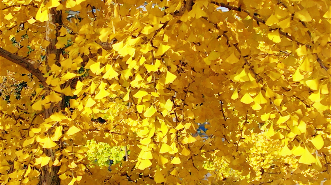 阳光透过缝隙,洒在每一片银杏叶上,像是给它们镀上了一层金边。