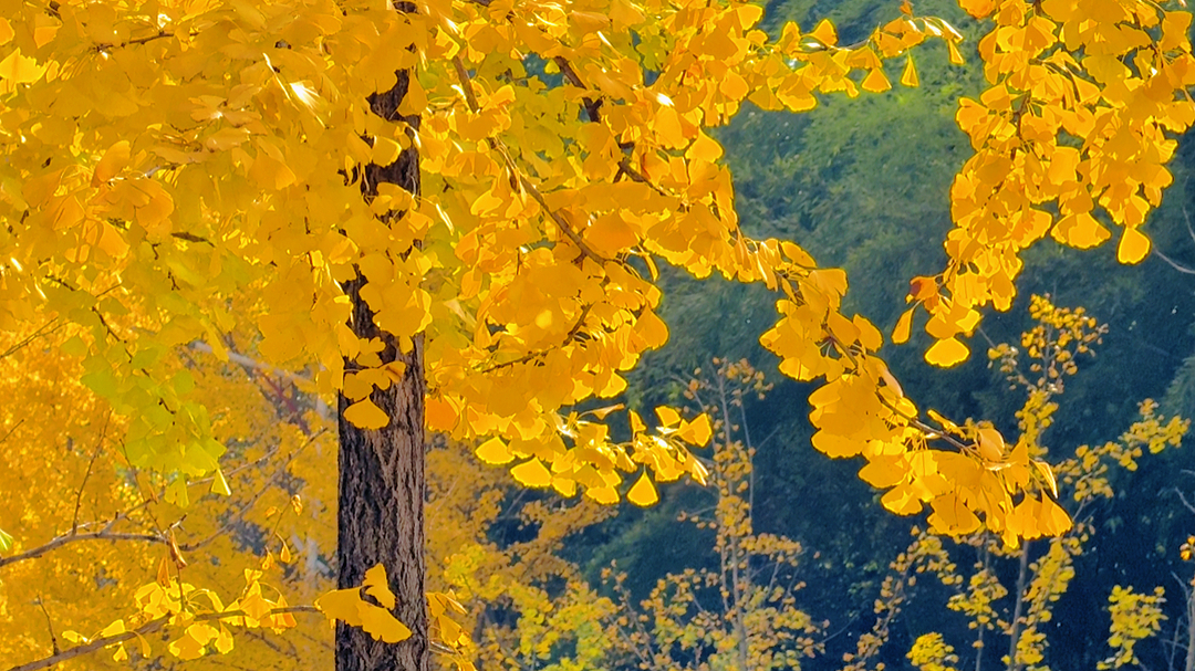 每棵树都像是守护着季节秘密的使者,用它们那灿烂的黄叶,讲述着初冬的故事。