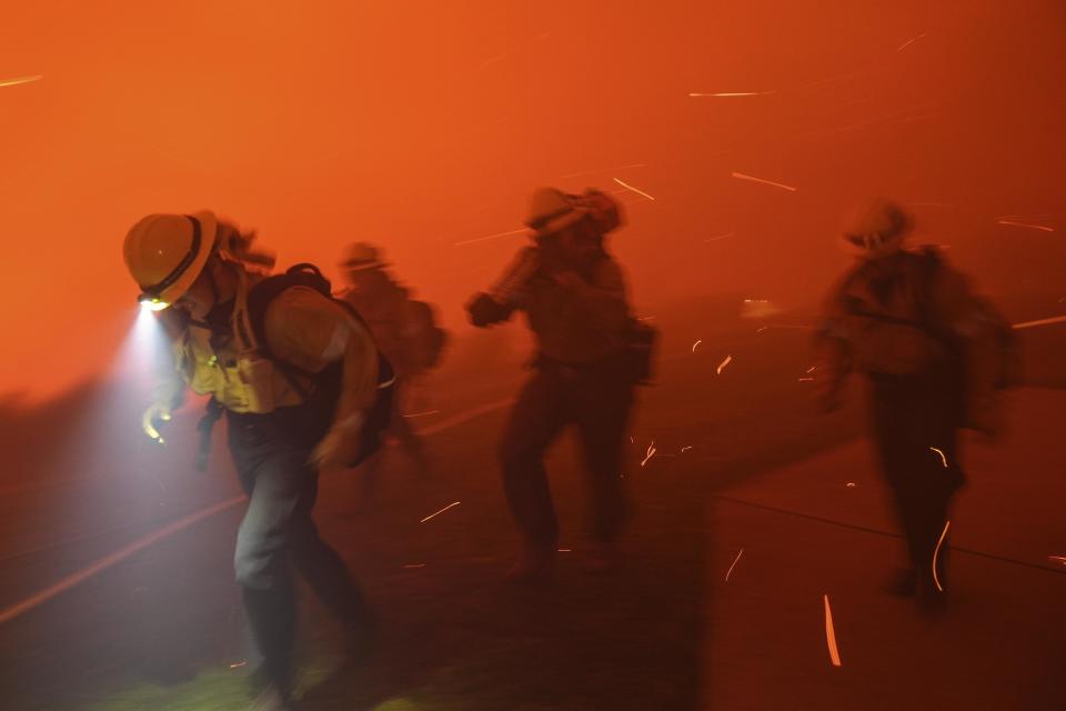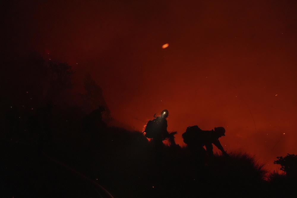 12月10日,消防员在美国加利福尼亚州马利布的佩珀代因大学观察迫近的野火。新华社/美联