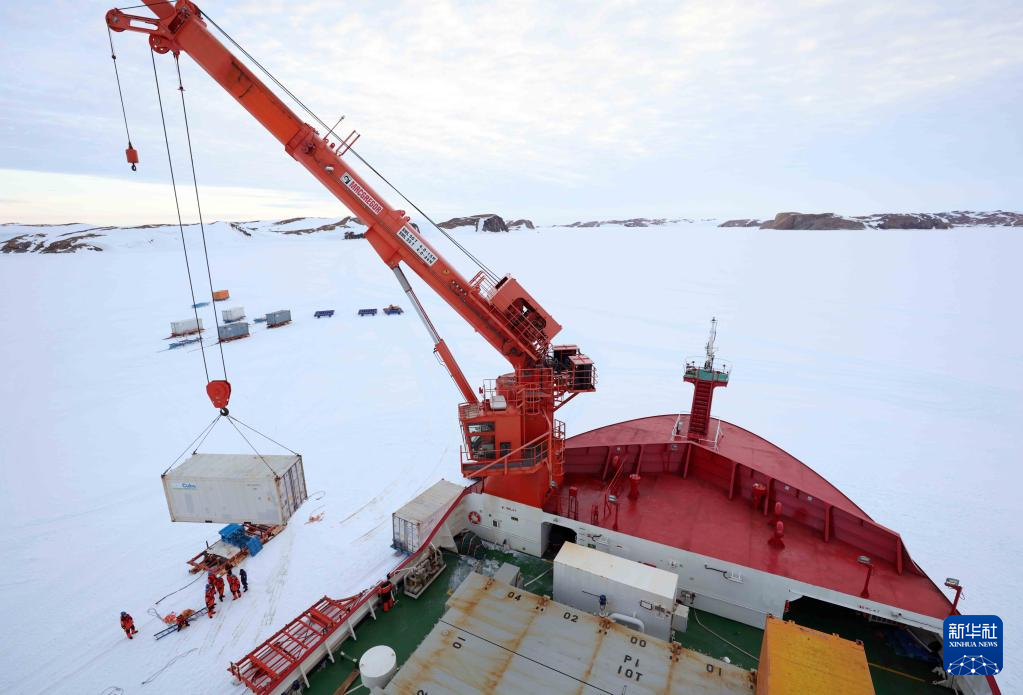 日前,执行中国第41次南极考察任务的“雪龙”号和“雪龙2”号开始南极中山站区域卸货作业。