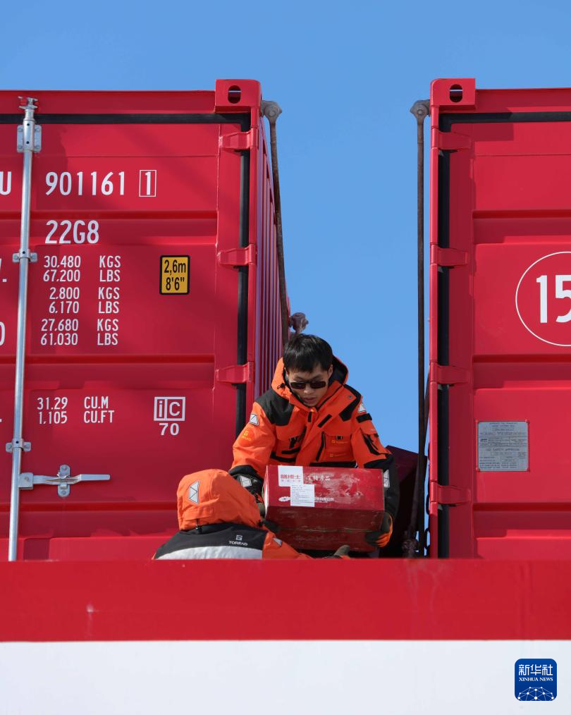 考察队员帮忙卸货(12月3日摄)。新华社记者黄韬铭摄
