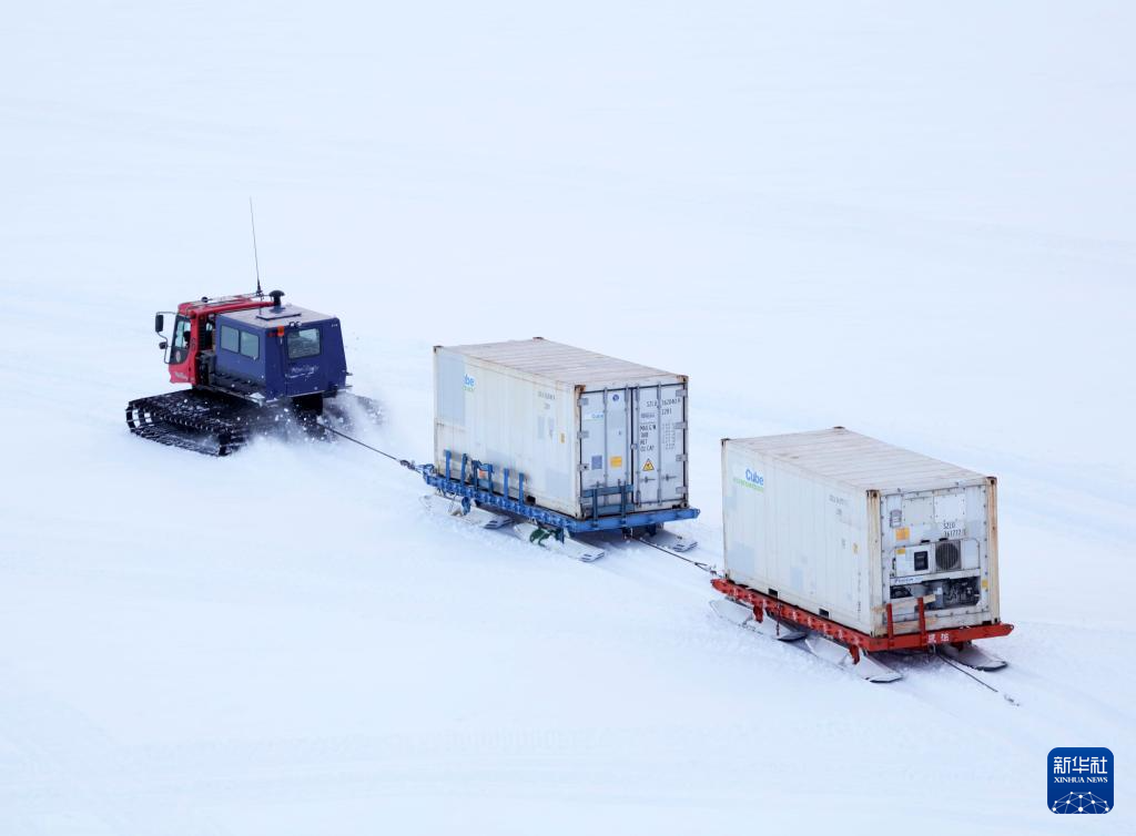 雪地车将货物运往中山站(12月9日摄)。新华社记者黄韬铭摄
