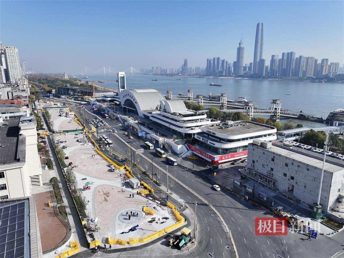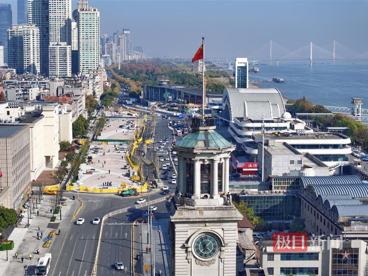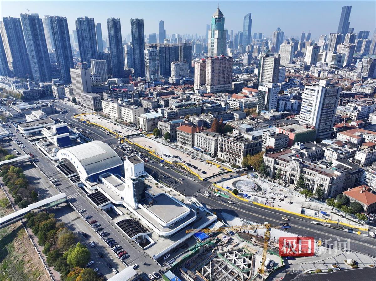 12月16日,武汉江汉关附近迎来新变化。航拍镜头中,武汉科学技术馆对面的3座市民活动空间及地下过街通道揭开面纱。记者在现场看到,工程人员正在打围区域内进行收尾施工。