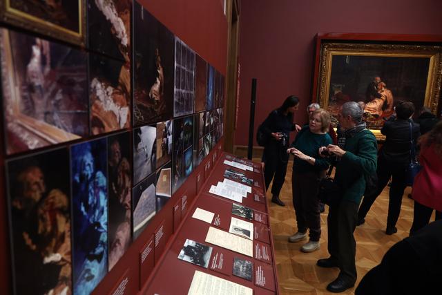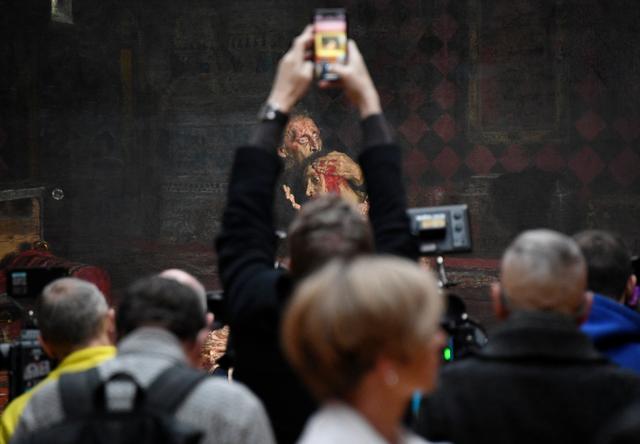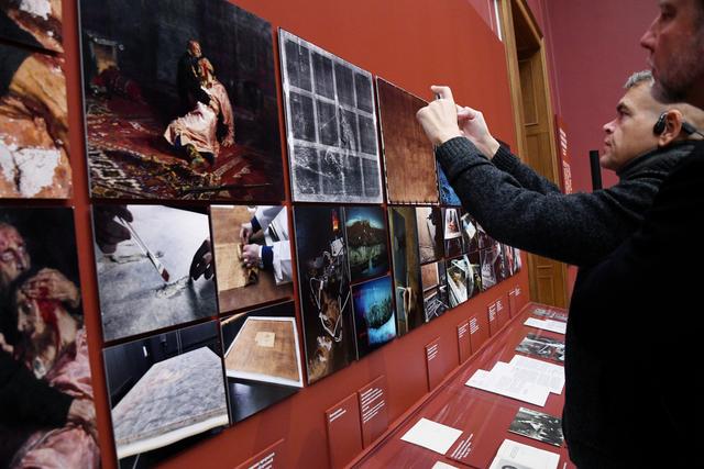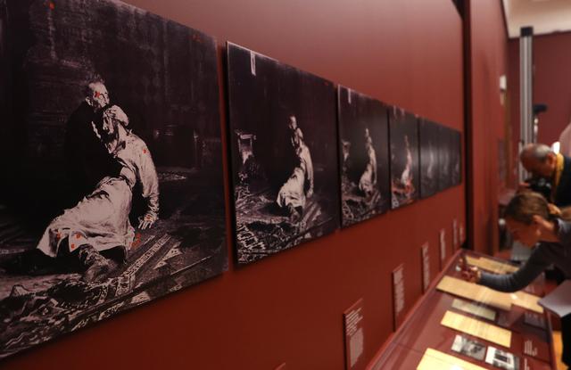 12月16日,在俄罗斯莫斯科的国立特列季亚科夫画廊,参观者参加展览“伊凡雷帝和他的儿子伊凡回归”的媒体预展。新华社/欧新