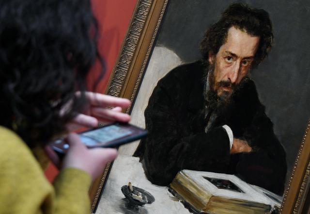 12月16日,在俄罗斯莫斯科的国立特列季亚科夫画廊,参观者观赏俄罗斯著名现实主义画家伊利亚·列宾的画作《作曲家P.I.布拉兰贝格像》。新华社/卫星社