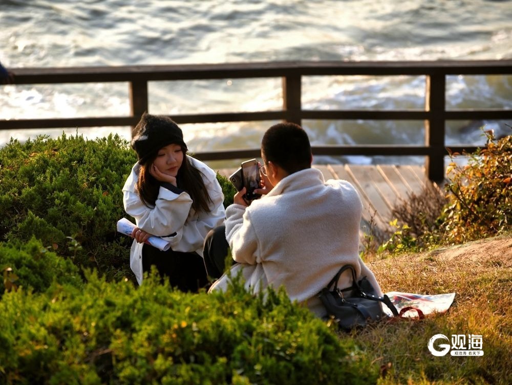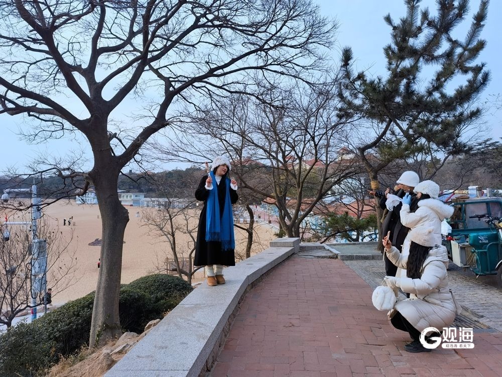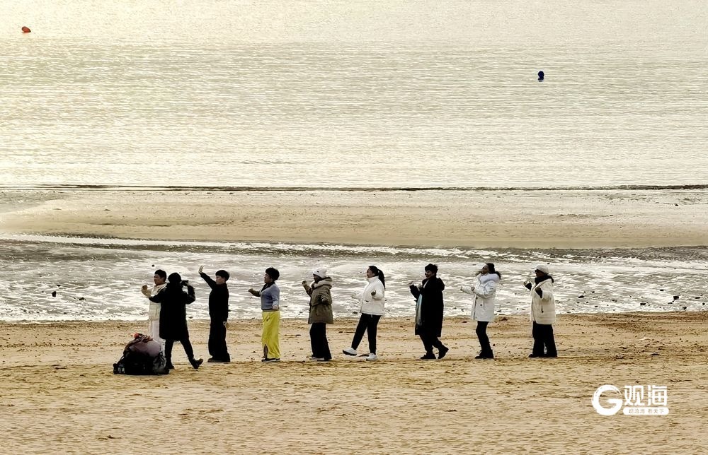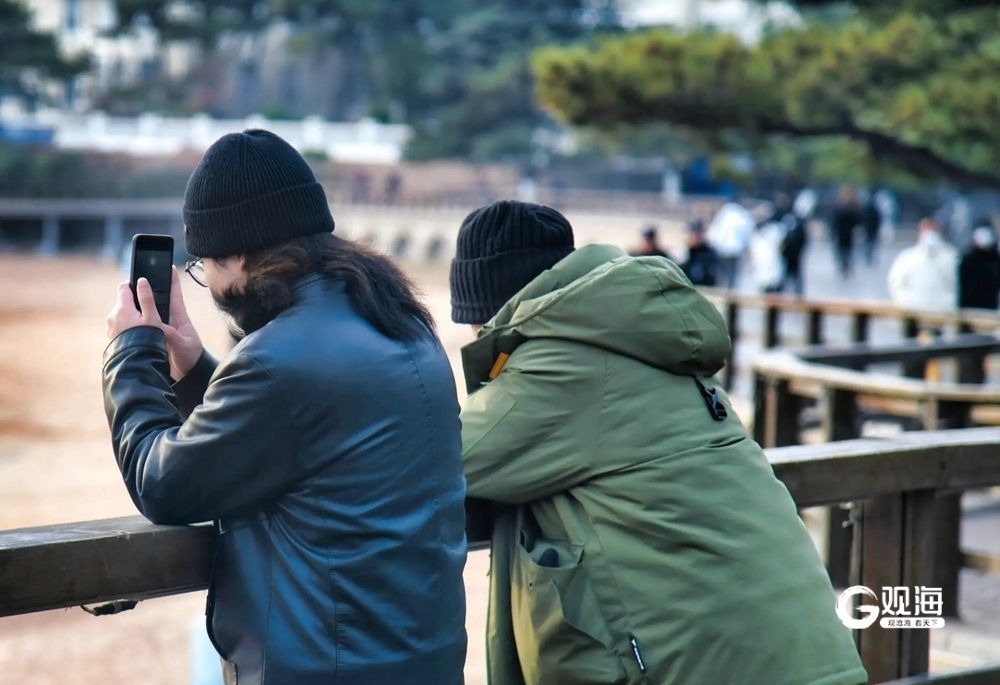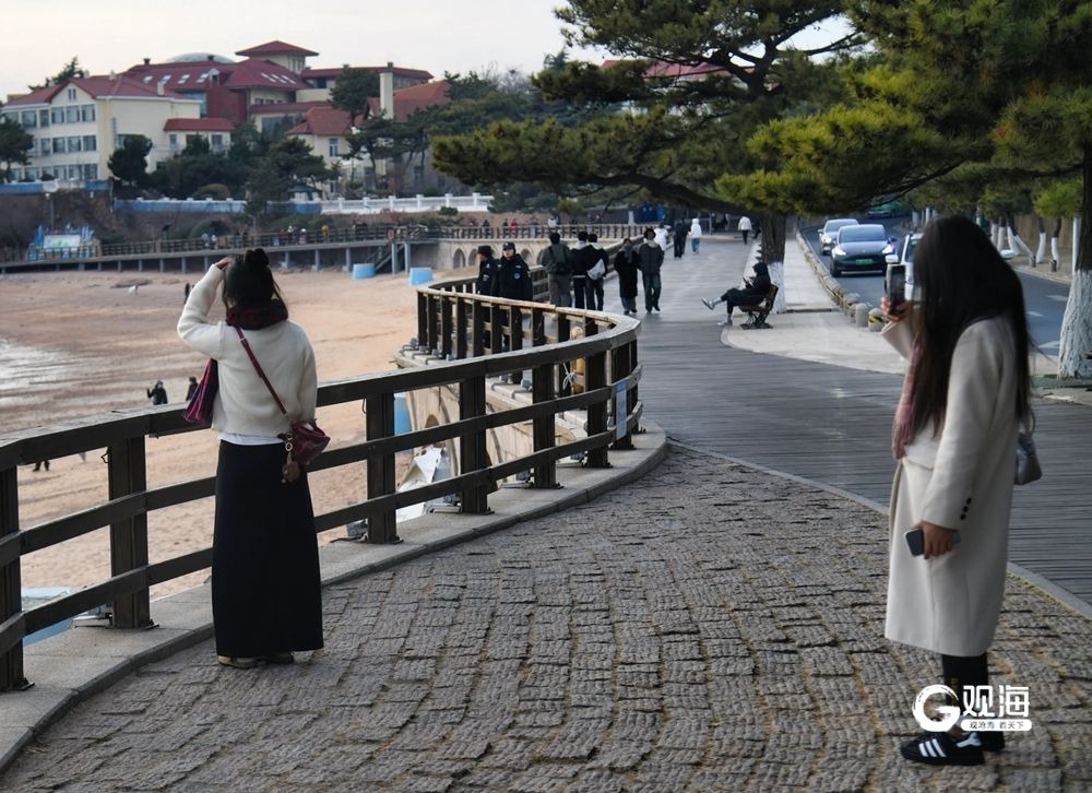 冬日的海边依然展示着自己独特的魅力。海上的日落,就是青岛为每一位游客精心准备的视觉盛宴,吸引着每一位 “追光者”。19日下午的太平角,余晖洒落在沙滩上,整个世界仿佛被染上了金色的光辉。海浪轻轻拍打着沙岸,发出悦耳的声音,视线所及,远处的夕阳缓缓下沉,天空、大海被染成了橙色。每一位看到的游客都拿起手机,打卡这独属青岛冬日的美景。