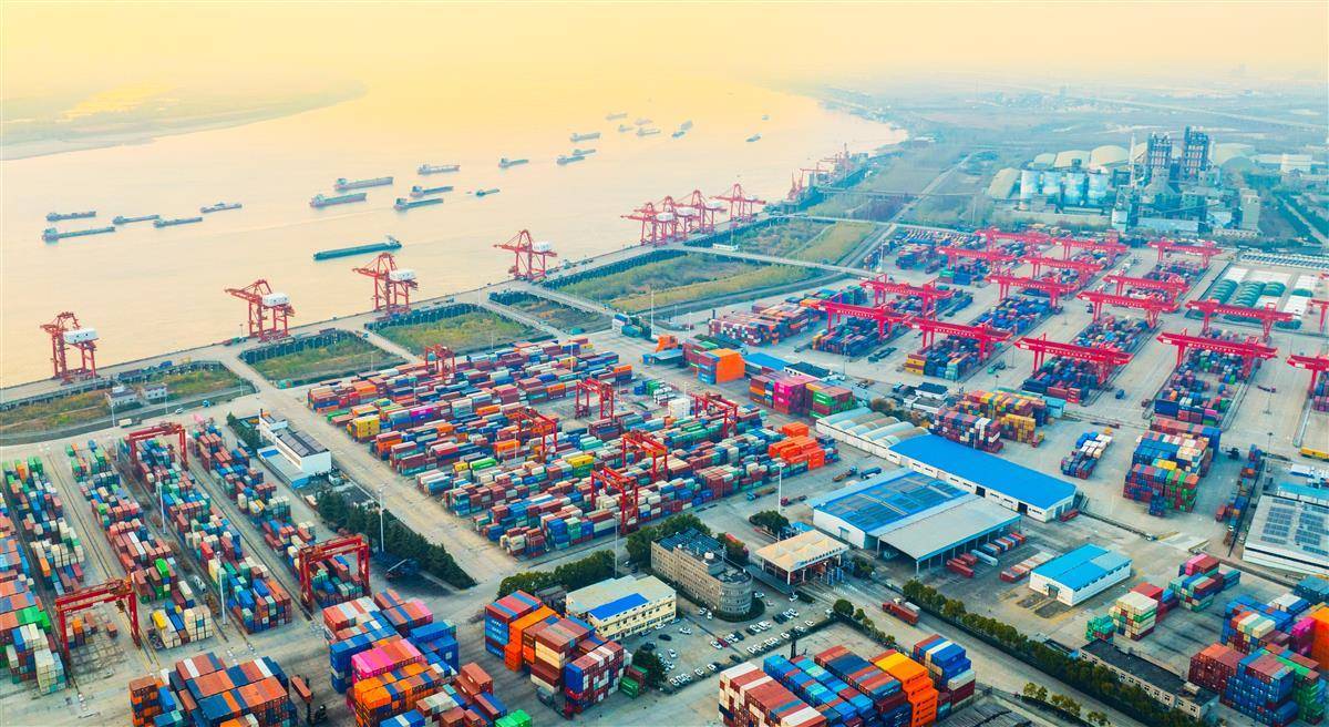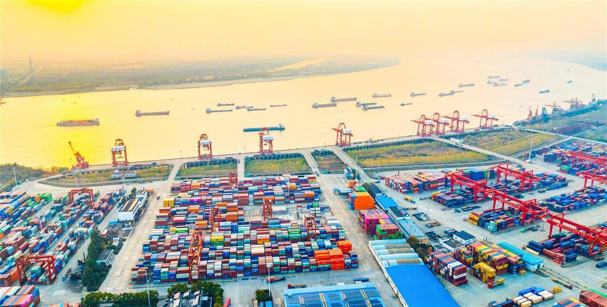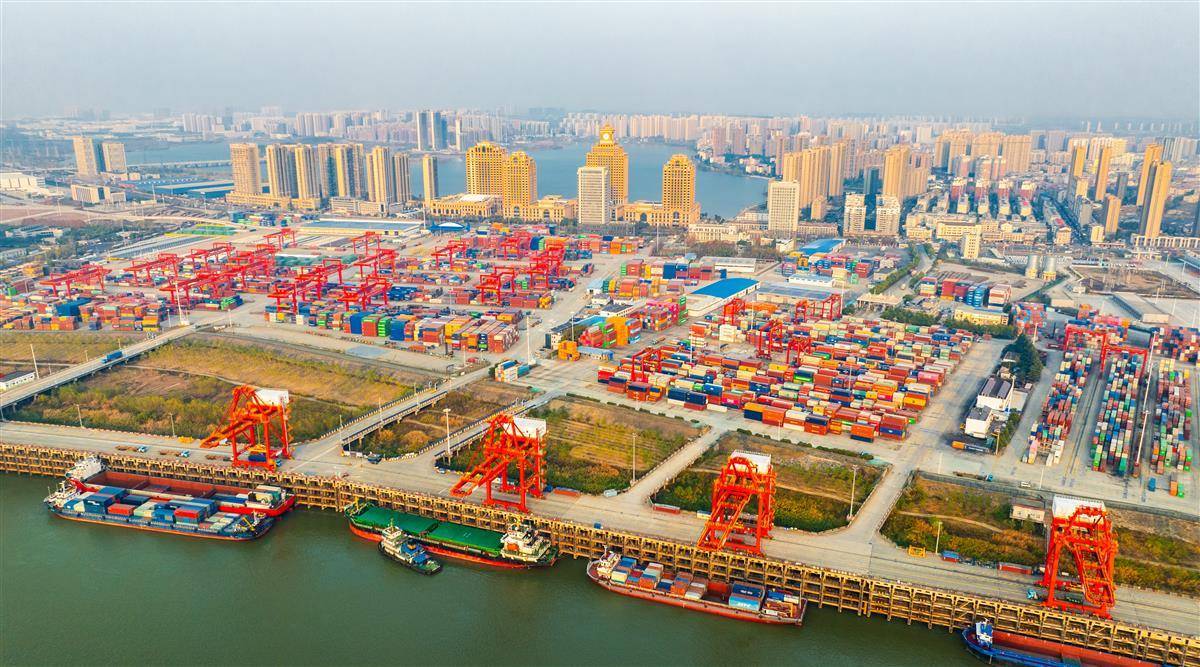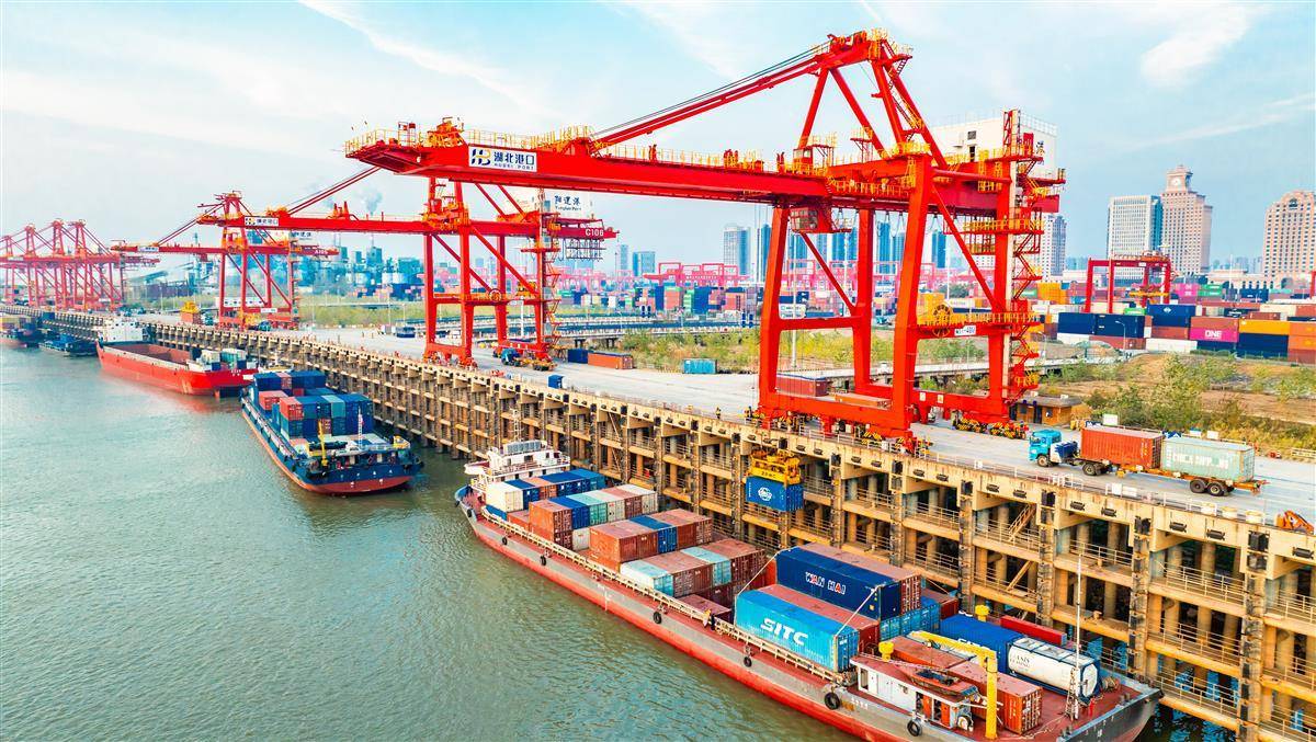 12月21日,武汉阳逻港集装箱码头货物装卸繁忙有序。临近年末,武汉阳逻港多措并举加快货物装卸转运效率,全力冲刺港口全年目标任务,确保外贸集装箱吞吐量与出口量再创新高。