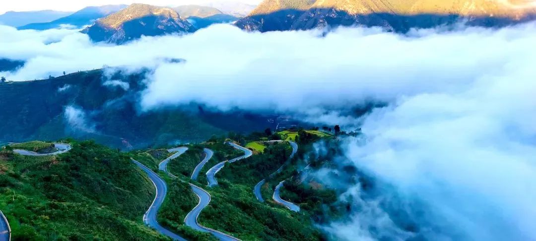 冬日清晨的第一缕阳光轻抚过岂富郎山顶的那片绿野,随后,屡屡金丝纷纷指向绿汁集镇方向,不一会就不约而同地汇聚在绿汁江峡谷中。凝固在山谷间的云雾被温柔流淌下的晨光照亮,一幅绝美画卷跃然于绿汁坡上。云绕谷中,雾绕青山,恍置仙境,这便是大自然最美的馈赠——绿汁云海。