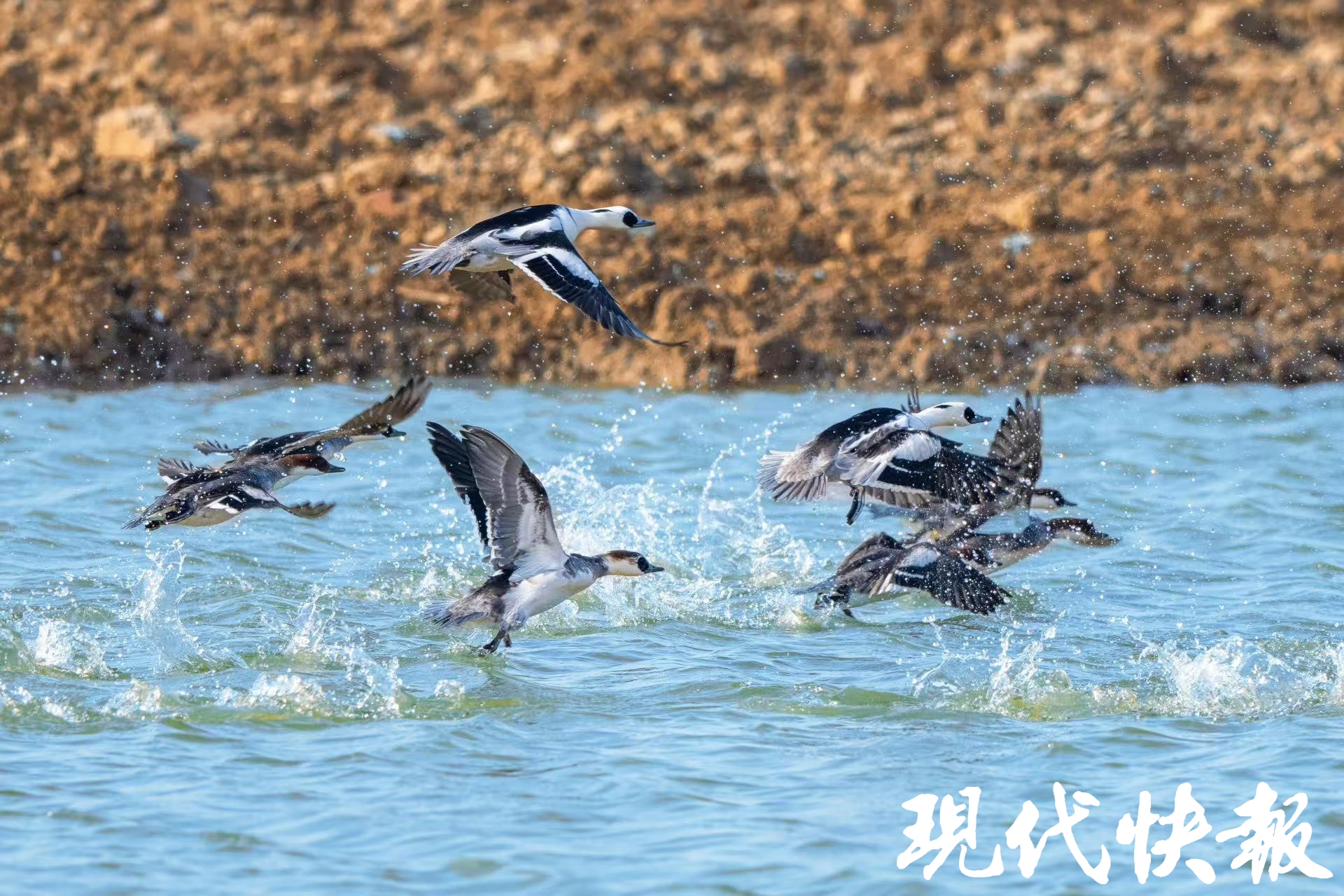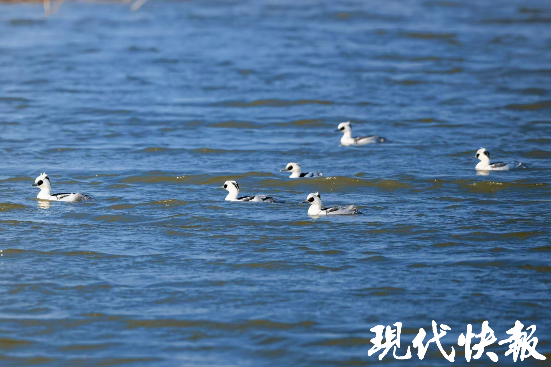 现代快报讯(通讯员戚晓云记者王菲)冬意正浓,候鸟纷纷飞抵盐城国家级珍禽自然保护区内越冬。近日,一群有“熊猫鸭”美誉的白秋沙鸭惊艳亮相,引发关注。