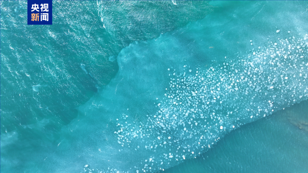 从高空俯瞰,进入冻结期的青海湖湖面上一块块晶莹剔透的湖冰静静漂浮,绵延数里,在一些还未结冰的区域湖水随风拍打着湖岸,冬日的青海湖呈现出另一种美。