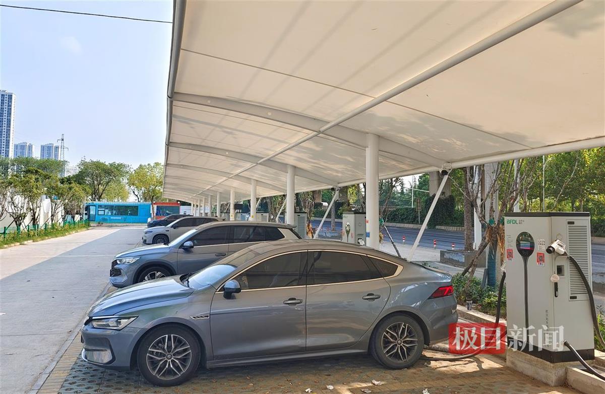 在洪山区白沙洲大道与园艺二路交汇处,昔日充满粪臭味的“菜园子”在改造后已变身为集充电、休闲于一体的绿色停车场。这片占地约4000平方米的场地,现设有64个车位、18台充电桩及宽敞的雨棚,为新能源车提供便捷服务。