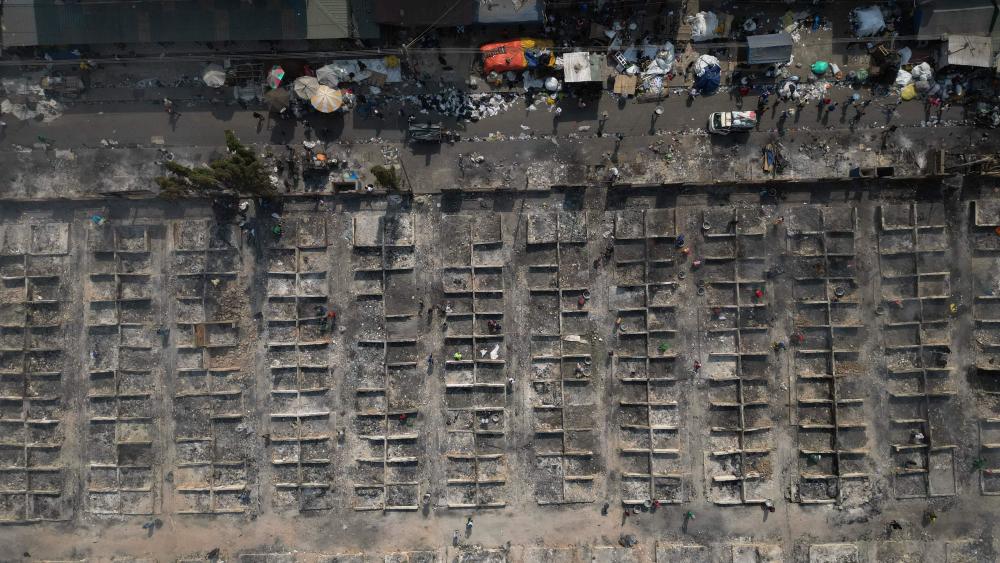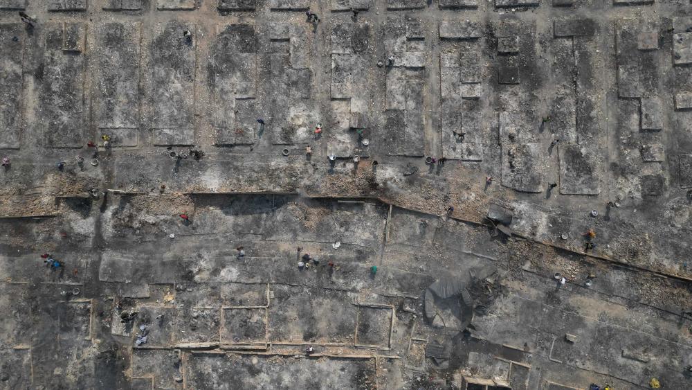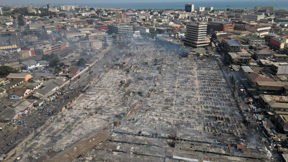 这是1月2日在加纳阿克拉航拍的发生火灾的二手服装市场。新华社/法新