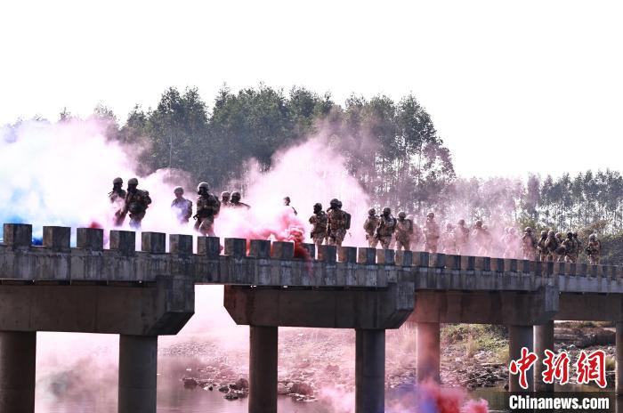 1月2日,武警广西总队柳州支队的官兵们闻令而动,迅速投身实战化训练。他们依次开展擒敌、射击、徒步行军等训练,以昂扬的冲锋姿态吹响新年度军事训练集结号。图为官兵穿越染毒地区。陈名利 摄