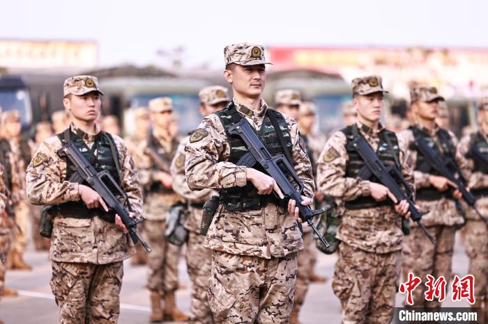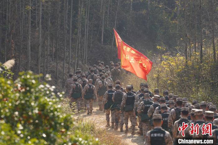 1月2日,武警广西总队柳州支队的官兵们闻令而动,迅速投身实战化训练。他们依次开展擒敌、射击、徒步行军等训练,以昂扬的冲锋姿态吹响新年度军事训练集结号。图为官兵进行徒步行军。陈名利 摄
