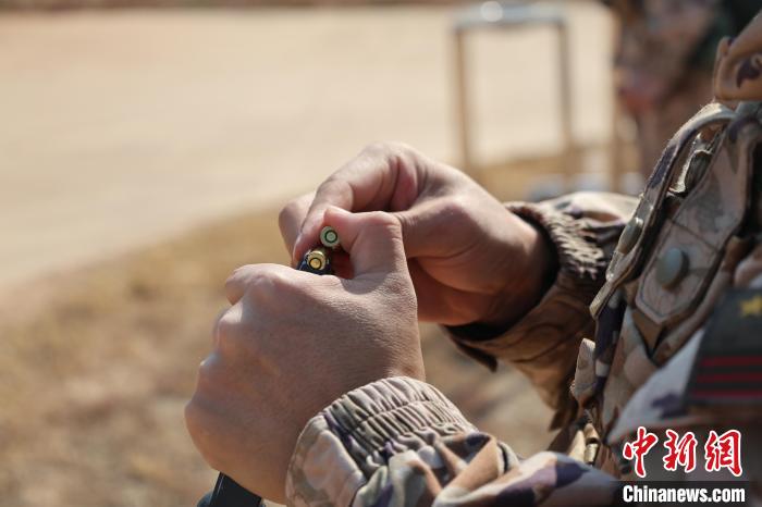 1月2日,武警广西总队柳州支队的官兵们闻令而动,迅速投身实战化训练。他们依次开展擒敌、射击、徒步行军等训练,以昂扬的冲锋姿态吹响新年度军事训练集结号。图为官兵装填子弹。陈名利 摄