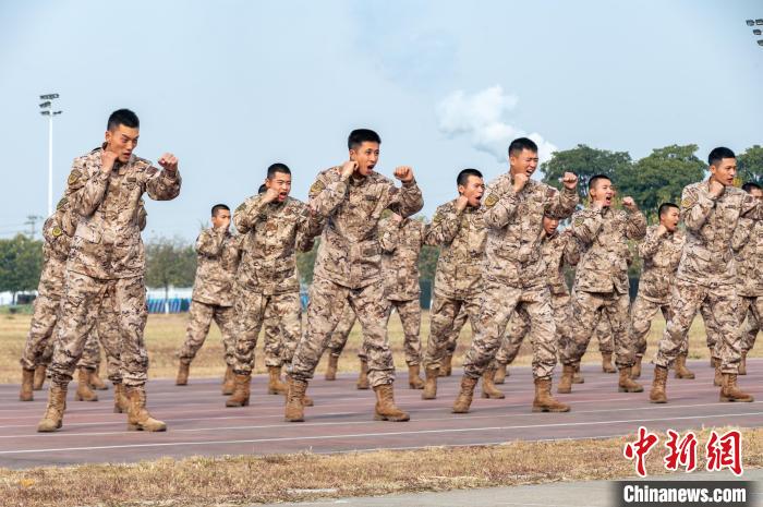 1月2日,武警广西总队柳州支队的官兵们闻令而动,迅速投身实战化训练。他们依次开展擒敌、射击、徒步行军等训练,以昂扬的冲锋姿态吹响新年度军事训练集结号。图为官兵进行擒敌术基础动作训练。陈名利 摄