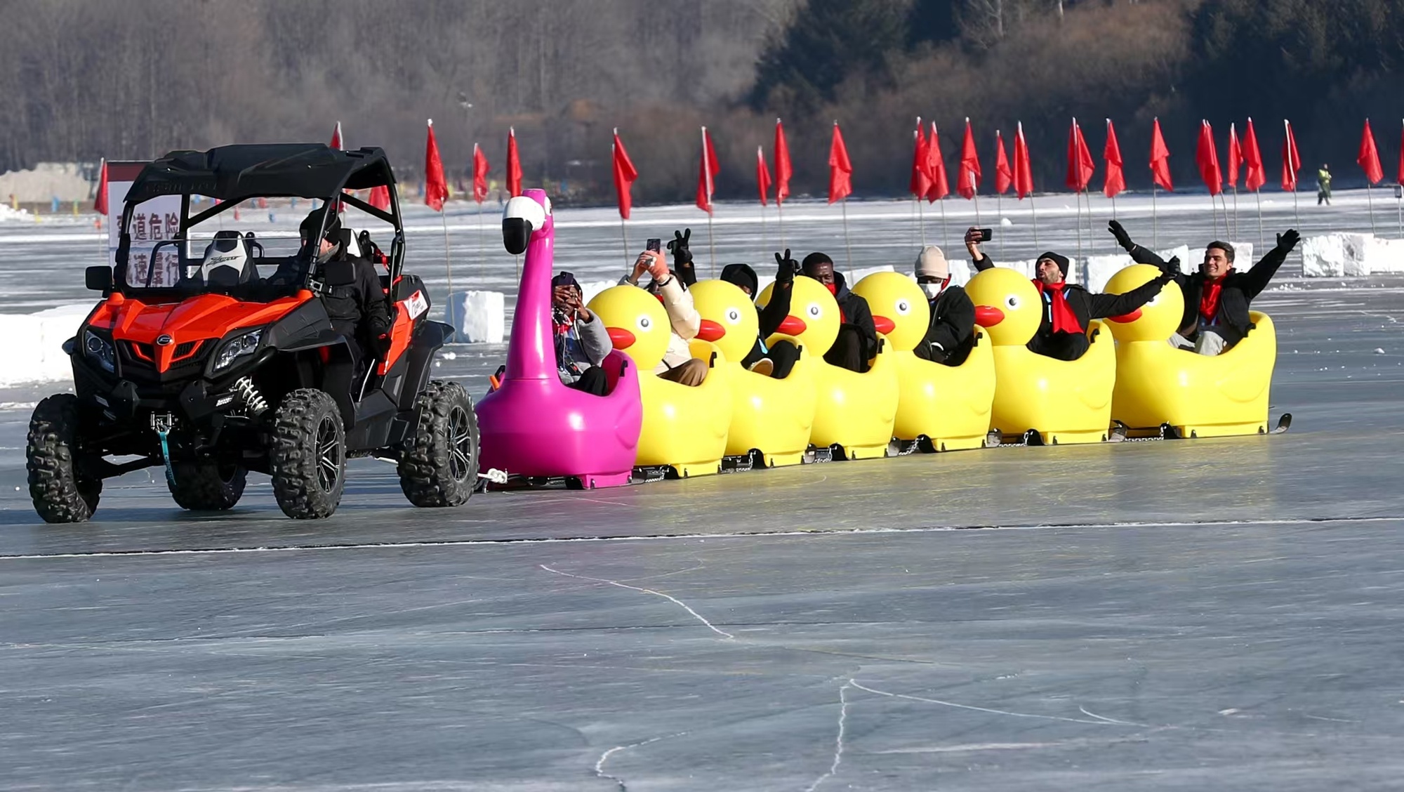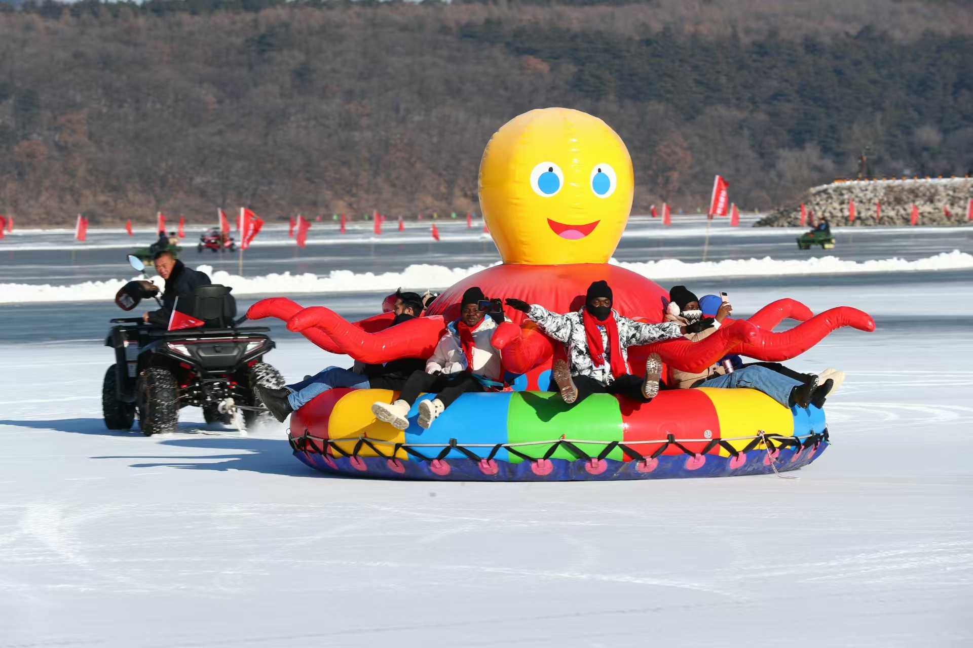 此外,净月潭景区内还新增了“冬青梦幻乐园、朝夕水岸冰湖和雪地露营、森林浴场林海雪原、瓦萨博物馆光影餐厅及全息投影、森林雪飘流、雪地摩托、冰上卡丁车、气垫船”等众多亮点纷呈的冰雪游乐项目。广大运动员和游客在这里,既能欣赏近百个冰雕雪建,感受“中国风”,又能在朝夕水岸体验独特冰湖露营,还能在冬青梦幻乐园打卡白雪中“蔌蔌冬青几树花”的诗意优雅,在林海雪原皑皑白雪中肆意“撒欢儿”,沉浸式体验AR、VR和无人机等科技感满满的冰雪项目。