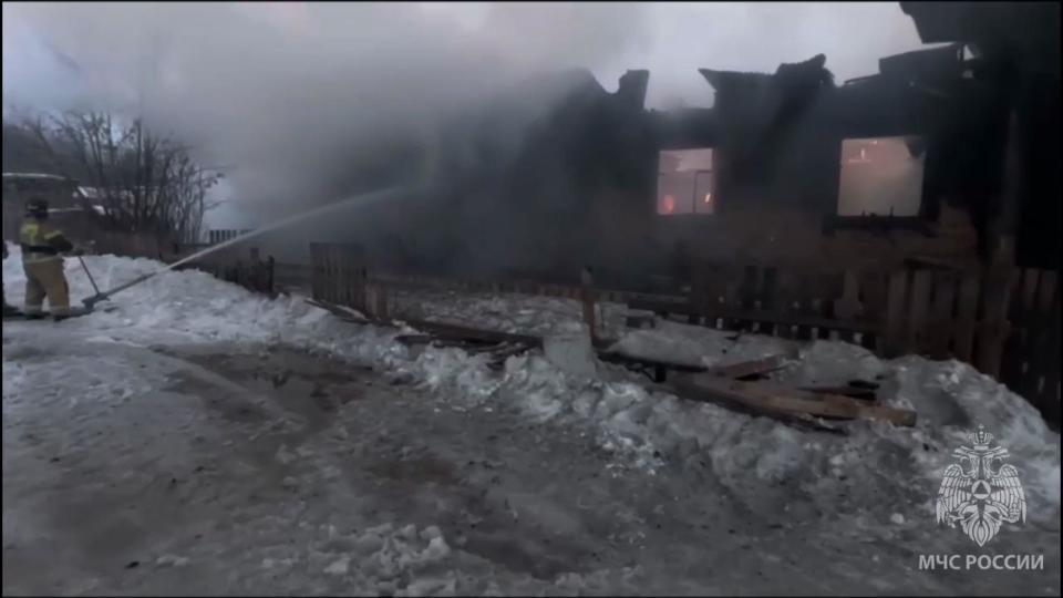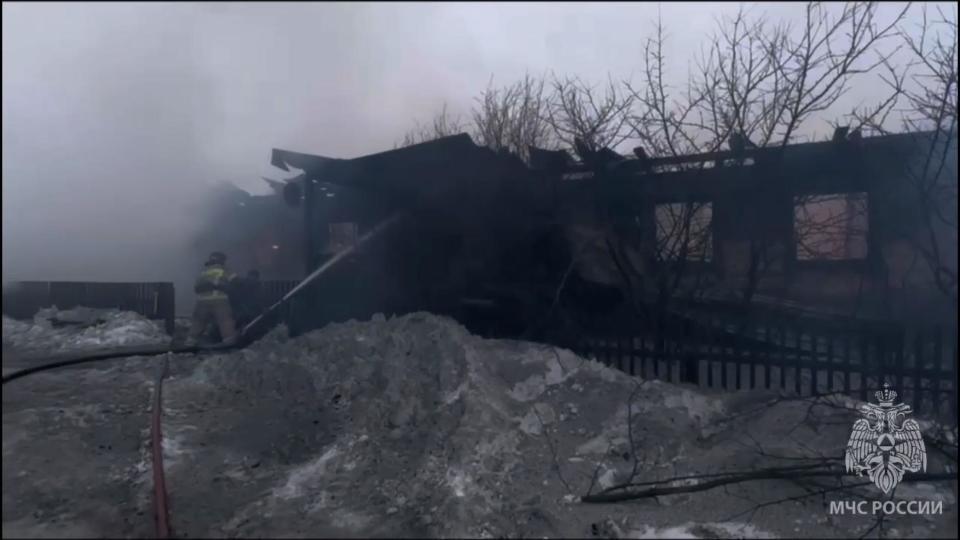 这张俄罗斯紧急情况部1月5日发布的视频截图显示,救援人员在俄罗斯基洛夫州基利梅济村的火灾现场进行救援。新华社发(俄罗斯紧急情况部供图)