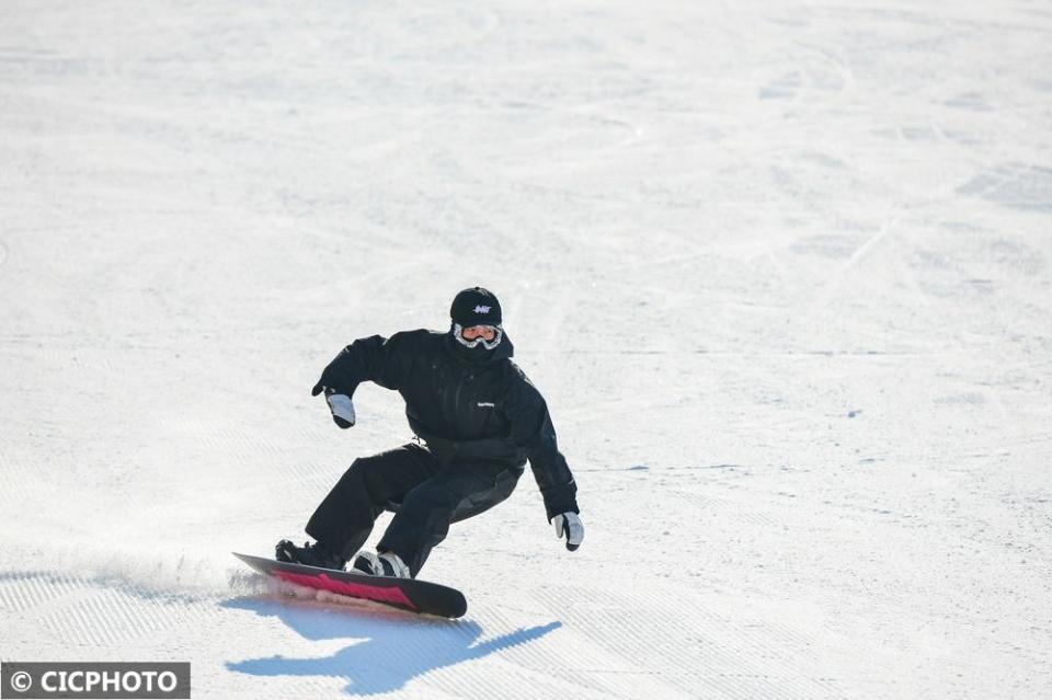 ↑2025年1月3日,游客在湖北省黄冈市英山县滑雪场滑雪。CICPHOTO/王江 摄