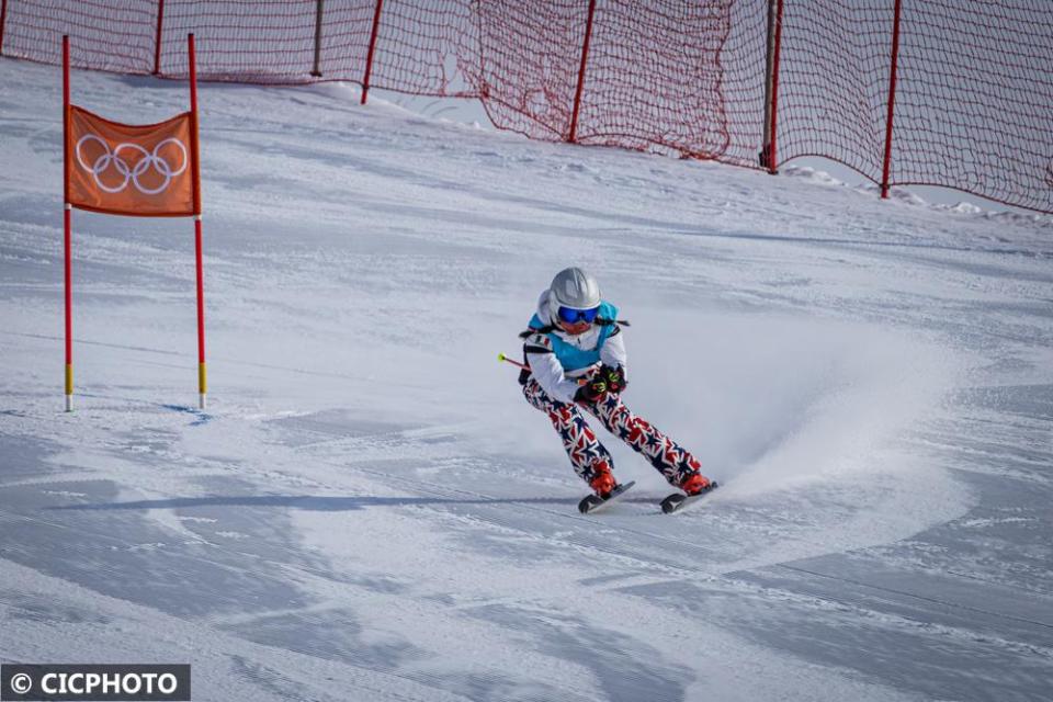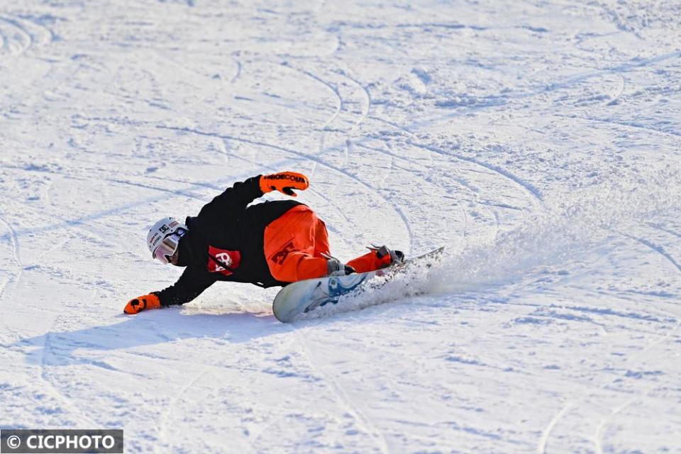 ↑2025年1月4日,在甘肃省武威市天祝藏族自治县乌鞘岭国际滑雪场,运动员进行双板大回转比赛。CICPHOTO/王守辉 摄