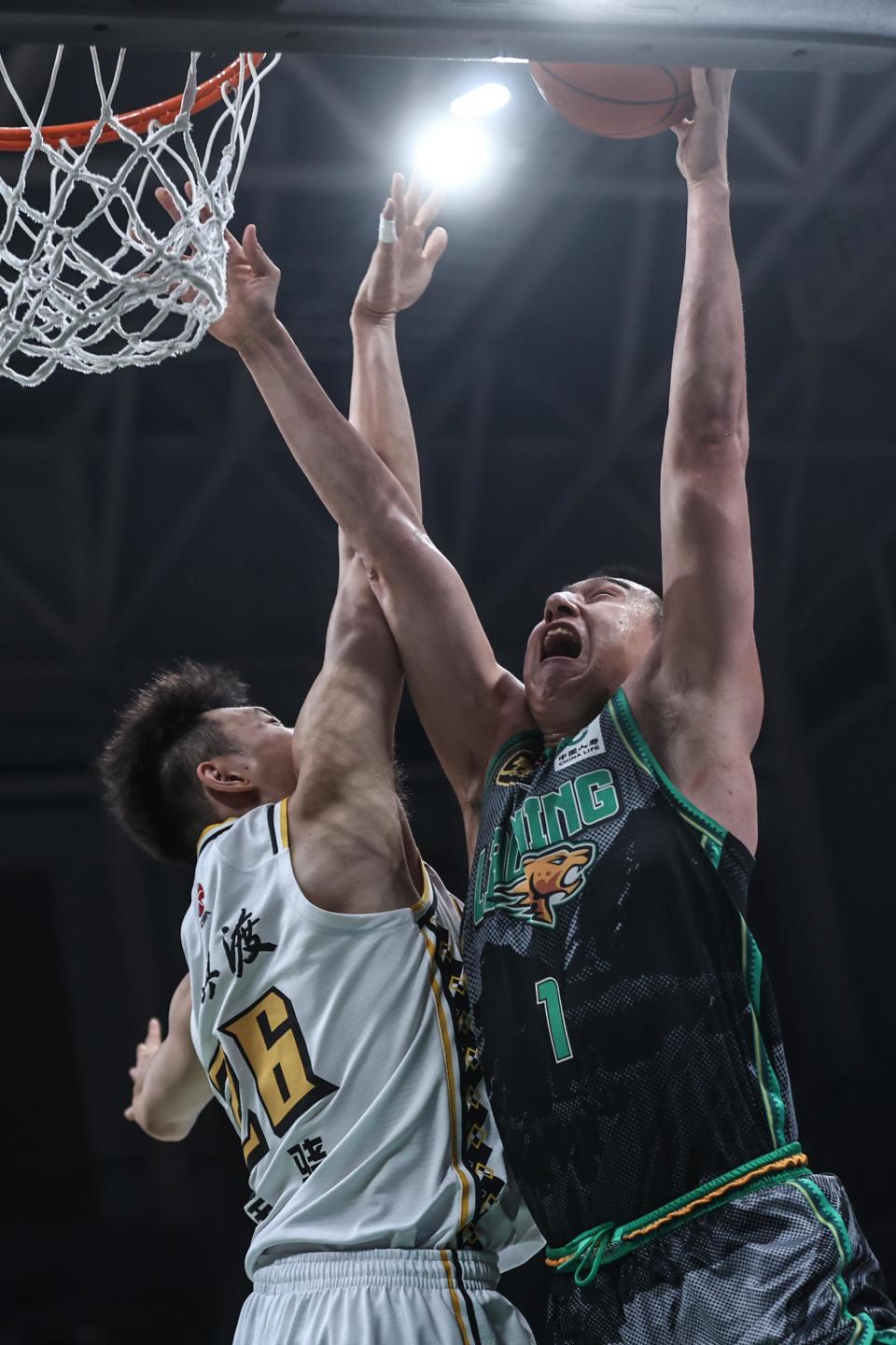 1月6日,辽宁本钢队球员付豪(右)在比赛中上篮。新华社记者 潘昱龙 摄