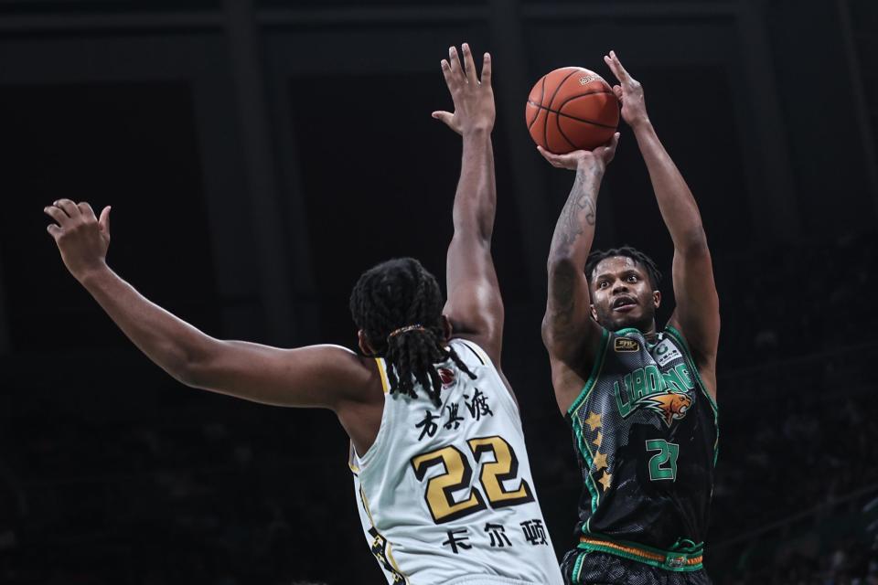 1月6日,辽宁本钢队球员帕顿(右)在比赛中投篮。新华社记者 潘昱龙 摄