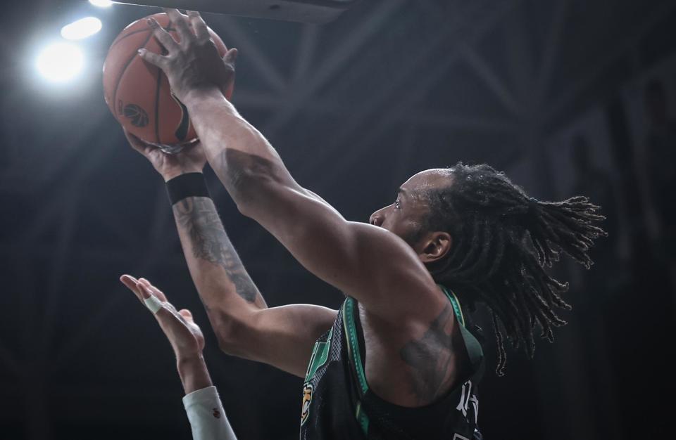1月6日,辽宁本钢队球员威尔斯在比赛中上篮。新华社记者 潘昱龙 摄