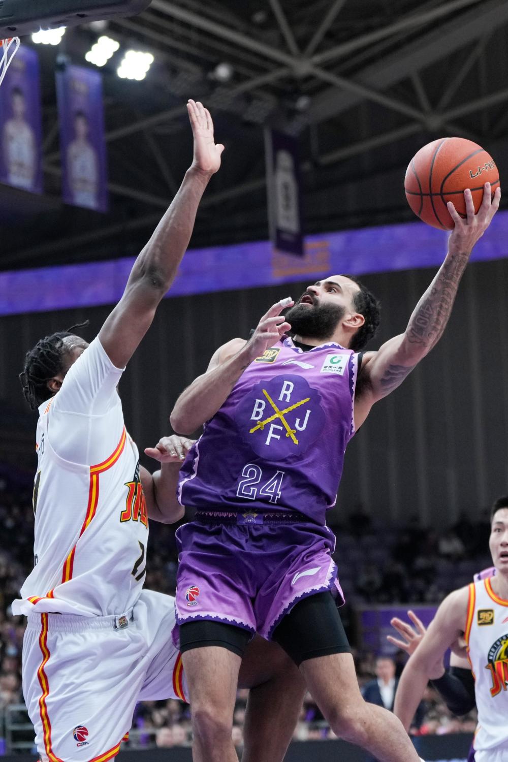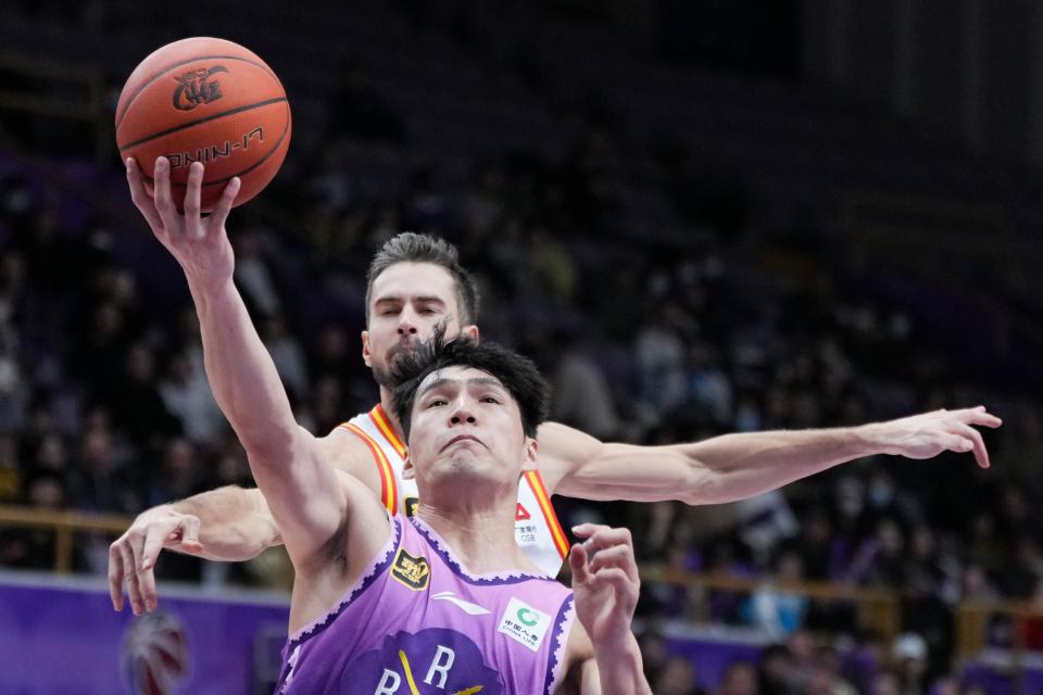 1月6日,北京控股队球员里勒(前右)在比赛中上篮。新华社记者 鞠焕宗 摄