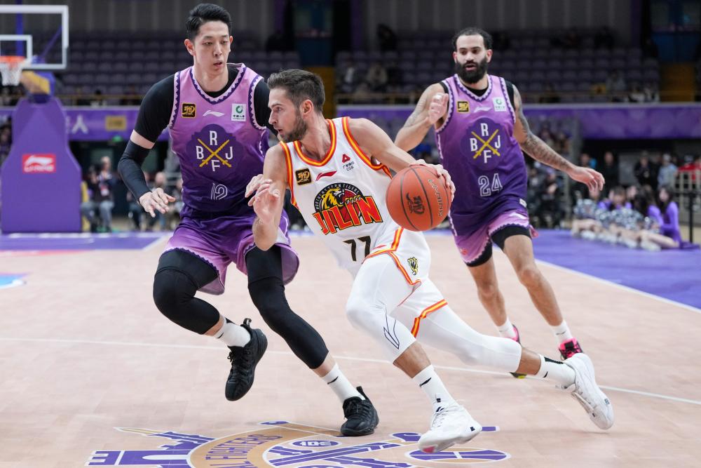 1月6日,吉林九台农商银行队球员基兹林克(中)在比赛中带球进攻。新华社记者 鞠焕宗 摄