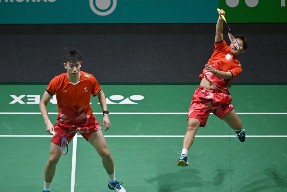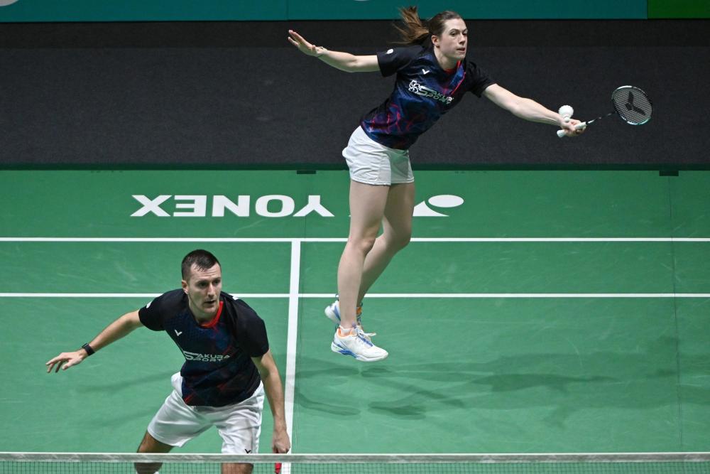 1月7日,冯彦哲(上)/黄东萍在比赛中。新华社发(张纹综摄)