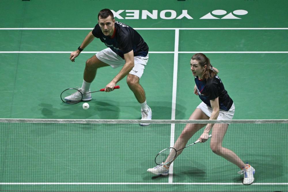 1月7日,冯彦哲/黄东萍(右)在比赛中。新华社发(张纹综摄)