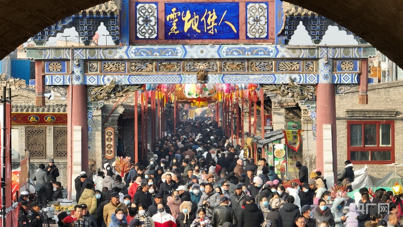 游客云集湟源丹噶尔古城品腊八粥赏民俗文化感受古都繁华。