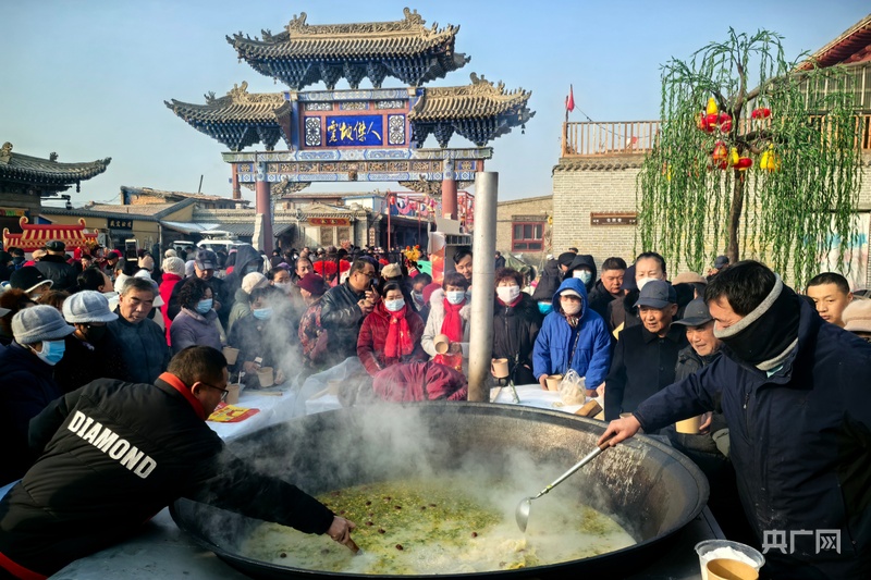 央广网西宁1月7日消息(记者张海东)1月7日,青海省西宁市湟源县丹噶尔古城内人头攒动,热闹非凡。当日,丹噶尔古城第十二届“万人品腊八粥”活动在这里举行。