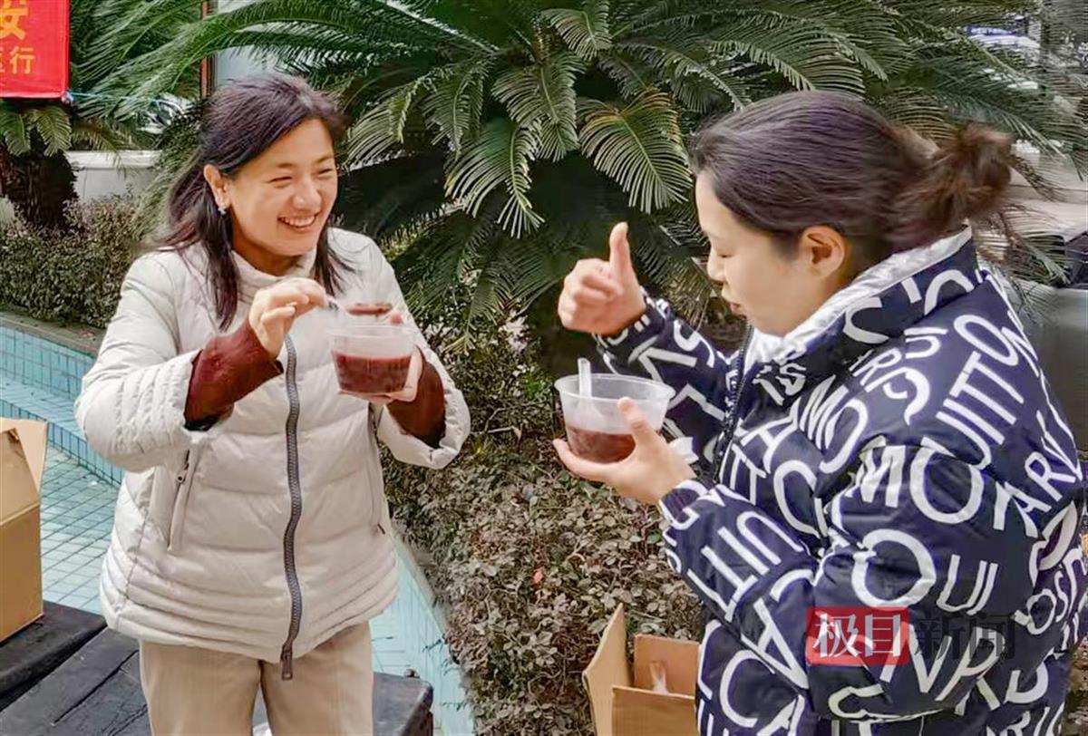 中南路街道舒家街社区居民高兴地品尝腊八粥