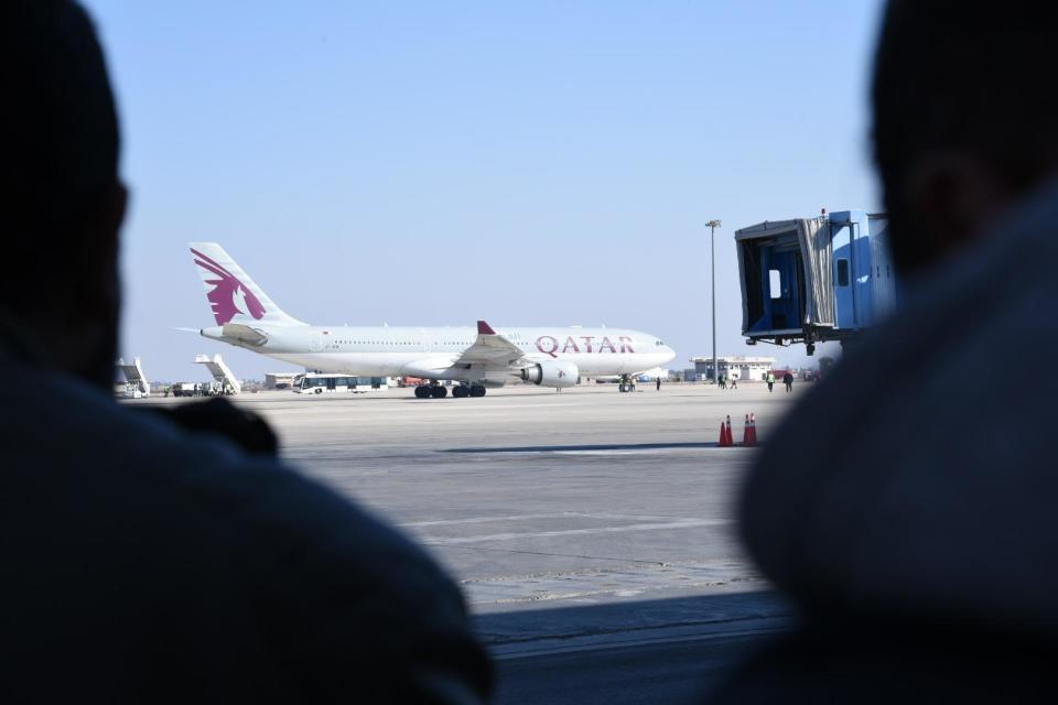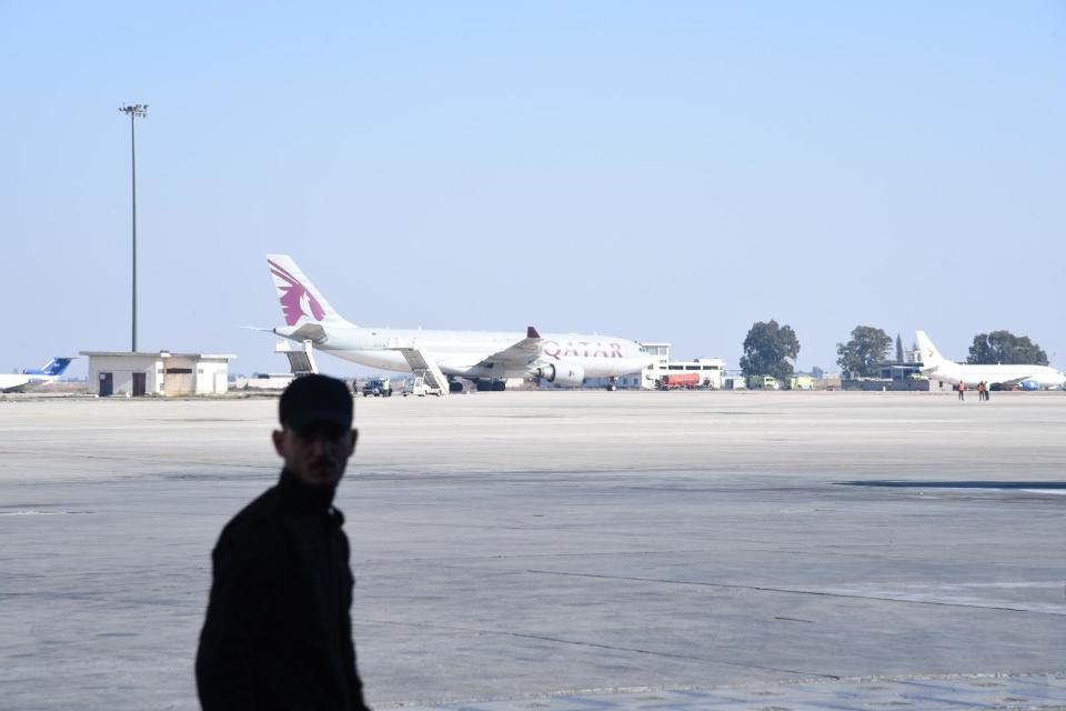 这是1月7日拍摄的一架降落在叙利亚大马士革国际机场的卡塔尔航空公司飞机。新华社发(蒙塞夫·梅马里摄)