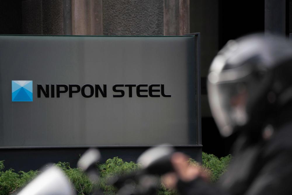 1月6日,在日本首都东京,行人经过日本制铁公司总部前的公司标识。新华社/法新