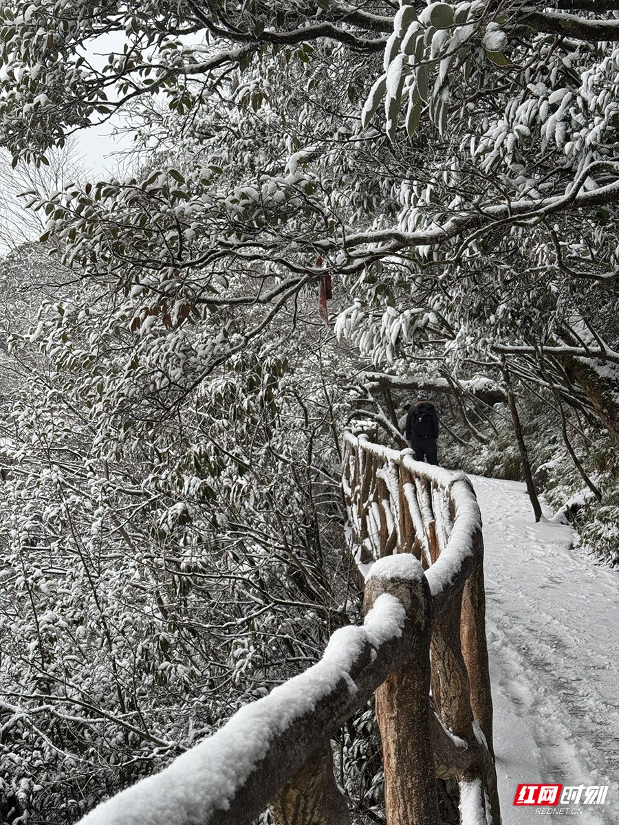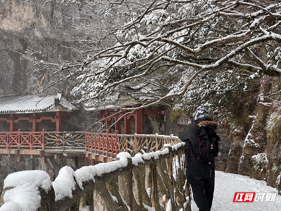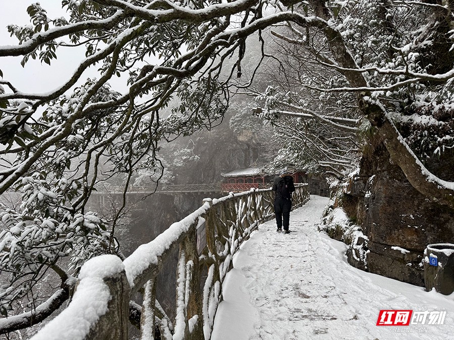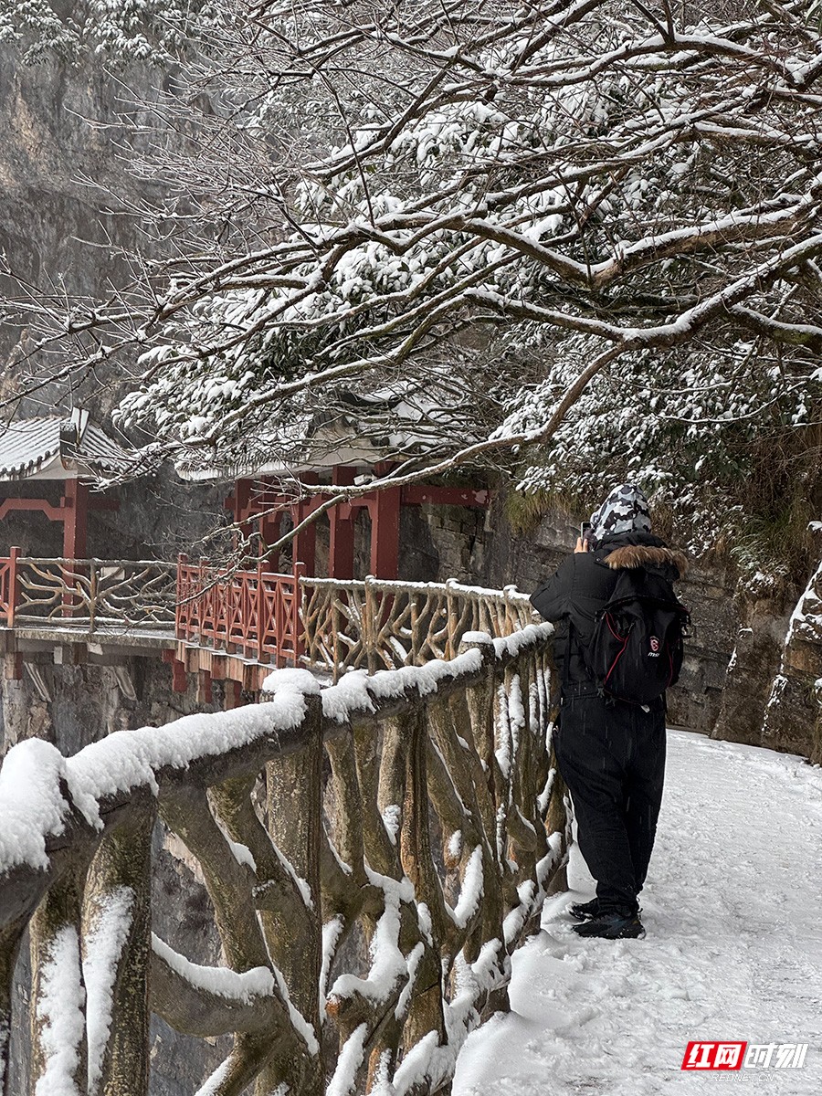 1月8日凌晨,张家界天门山迎来了2025年的第一场大雪,整个天门山顶现在是银装素裹,地面的积雪可以踩出深深的脚印。根据天气预报,这两天降雪会持续,天门山索道正常开通,冰雪天气,提醒上山赏雪的游客们提前做好御寒防滑措施。