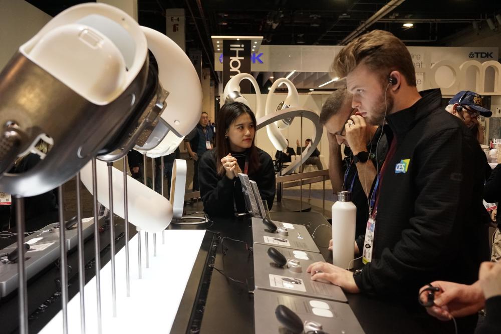 1月7日,人们在美国拉斯维加斯消费电子展韶音科技展区体验产品。新华社发(曾慧摄)