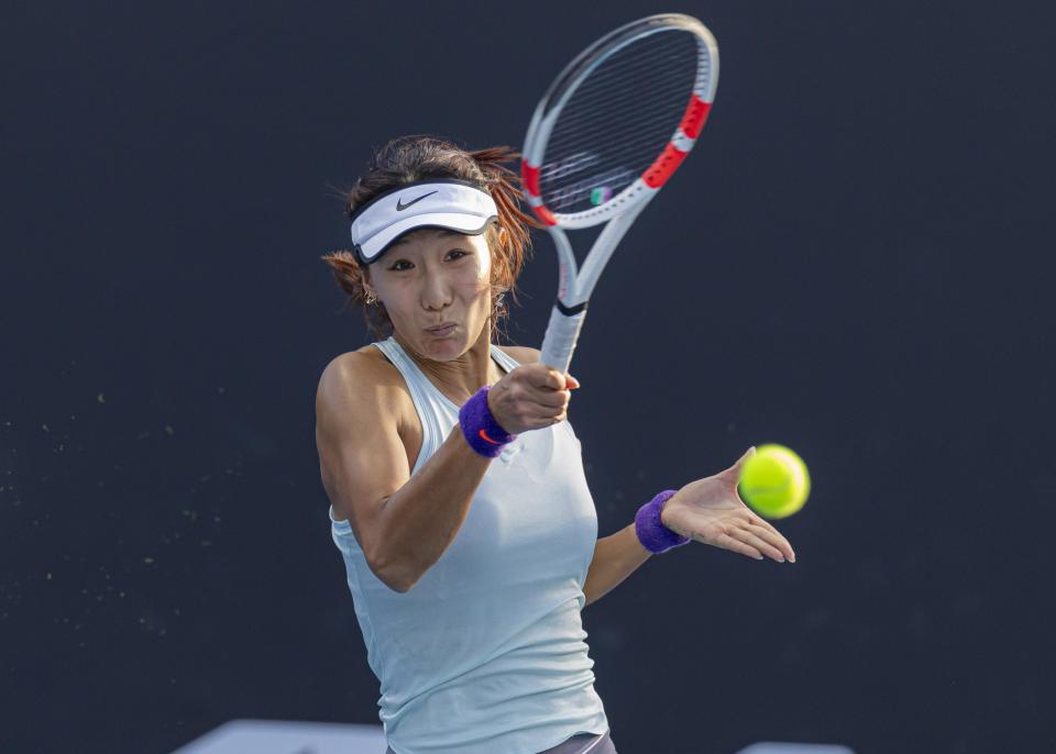 1月8日,高馨妤在比赛中回球。新华社发(储晨摄)