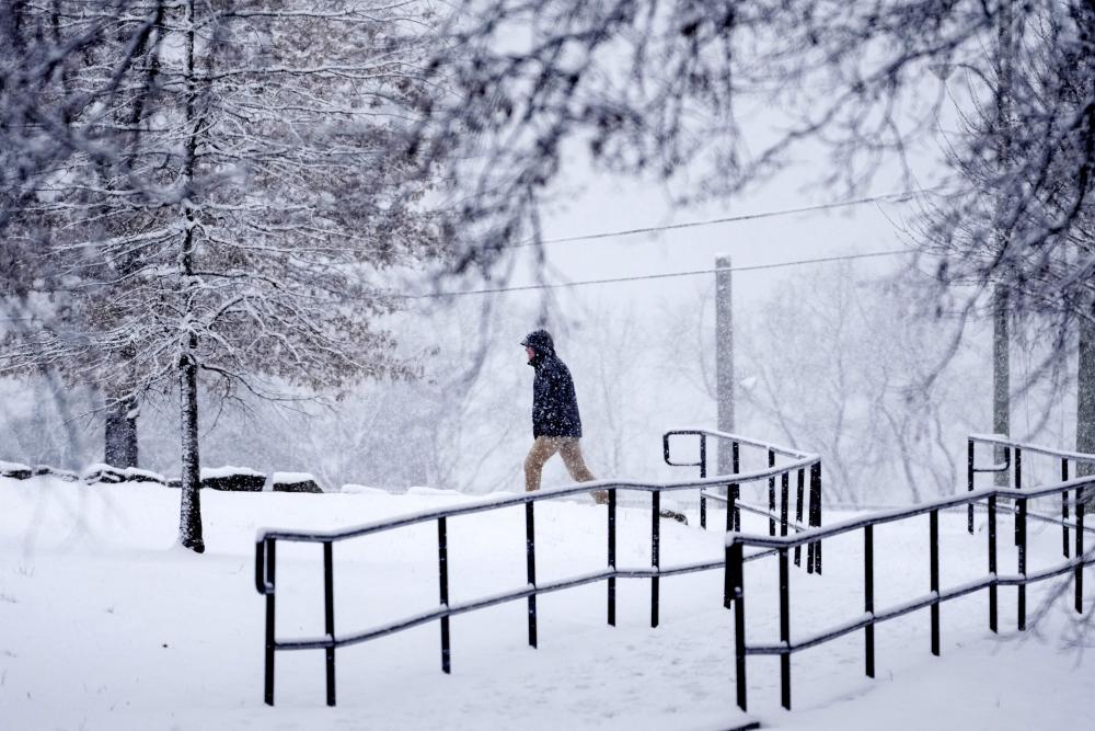 1月10日,在美国田纳西州纳什维尔,行人冒雪出行。新华社/路透