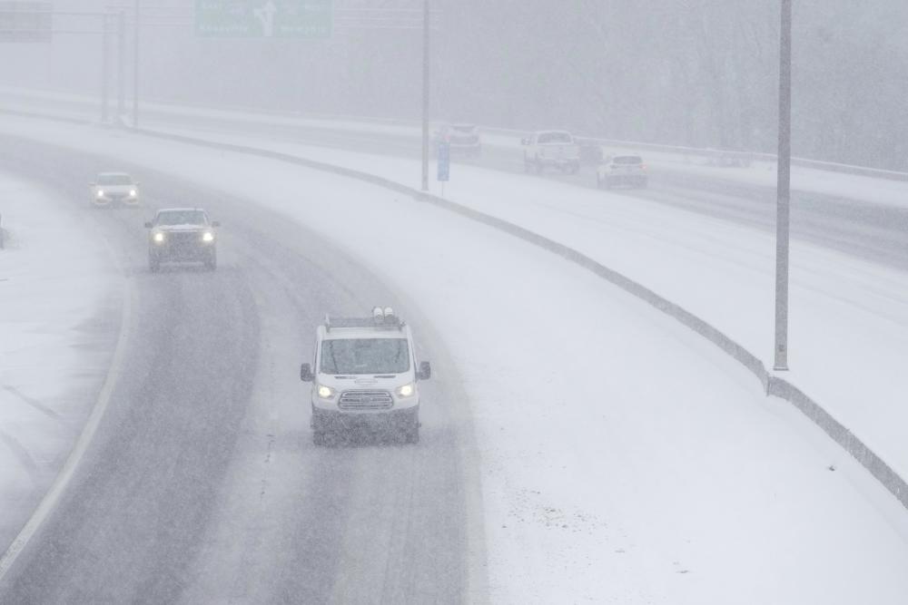 1月10日,在美国田纳西州纳什维尔,车辆在雪中行驶。新华社/美联
